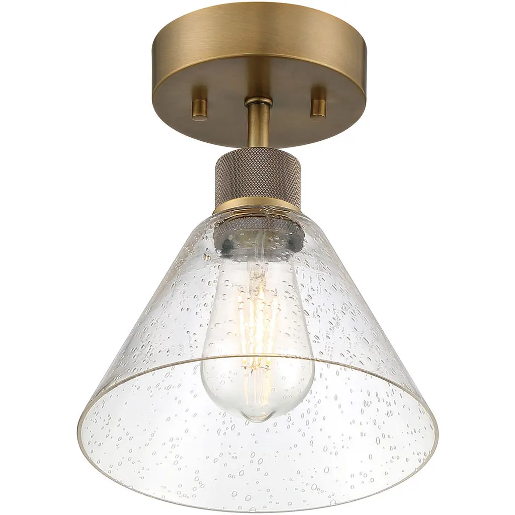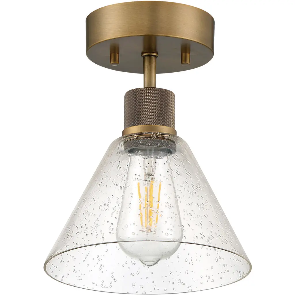 Port Nine Martini LED Semi-Flush - Antique Brushed Brass - Seeded Glass - Replaceable LED