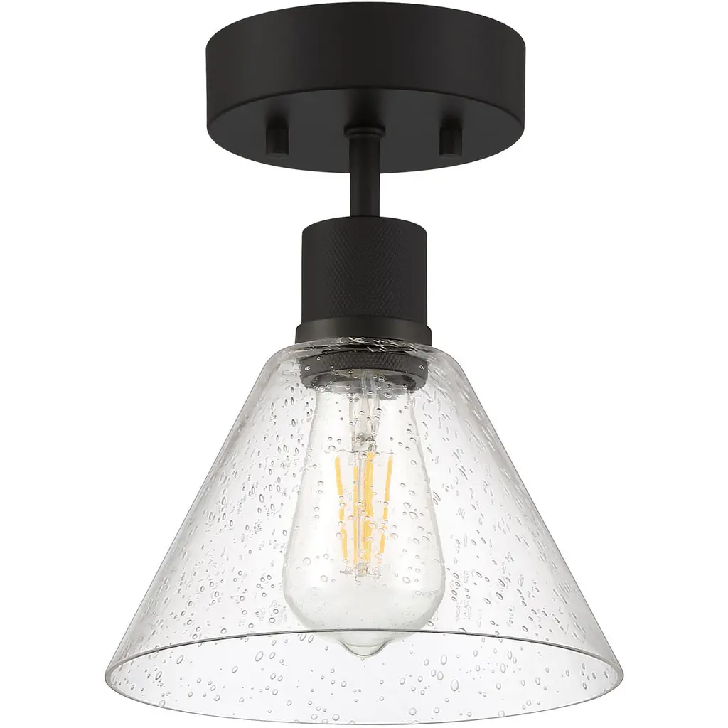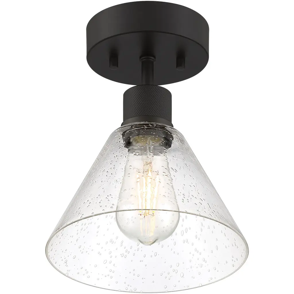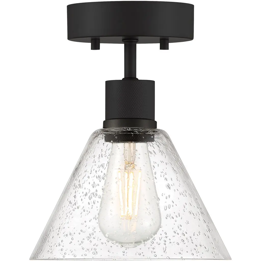 Port Nine Martini LED Semi-Flush - Matte Black - Seeded Glass - Replaceable LED