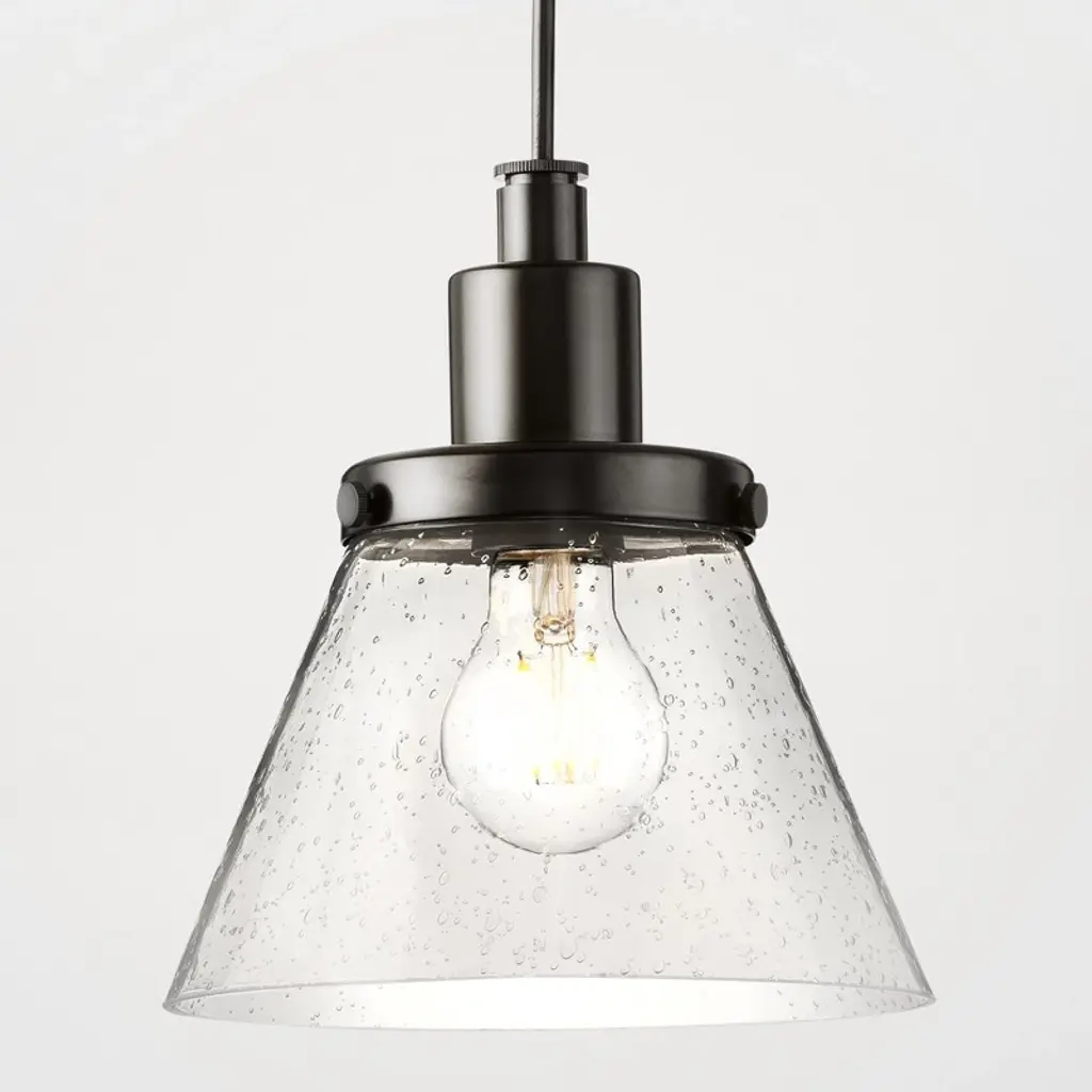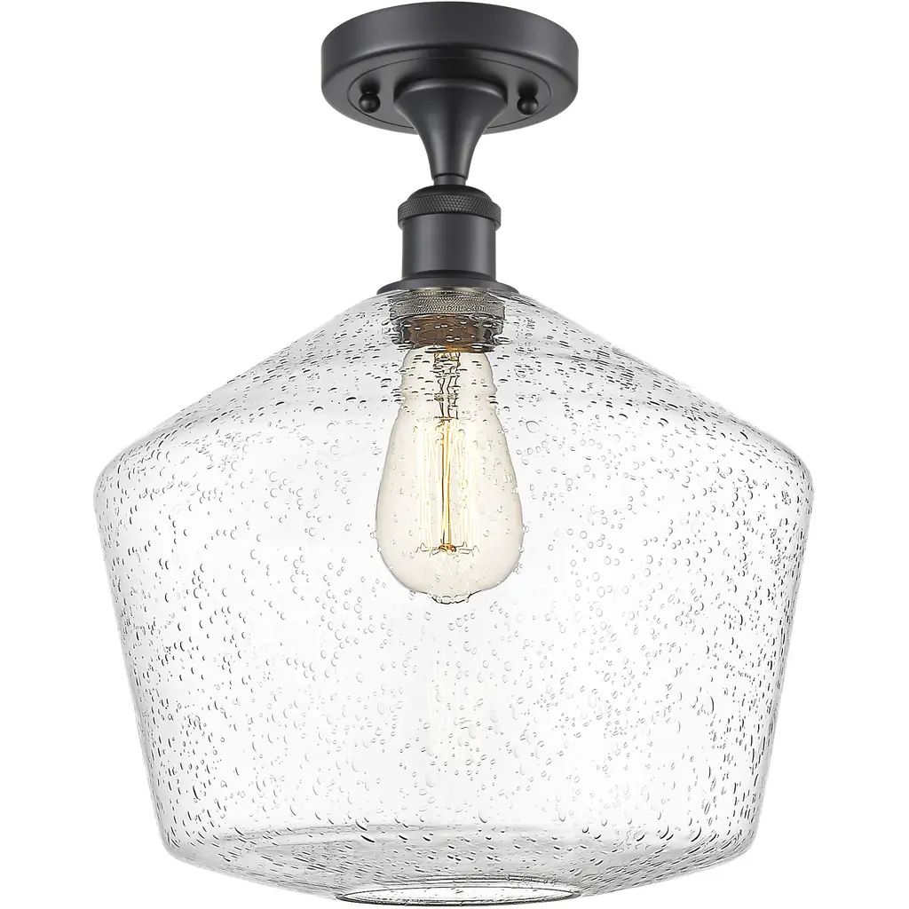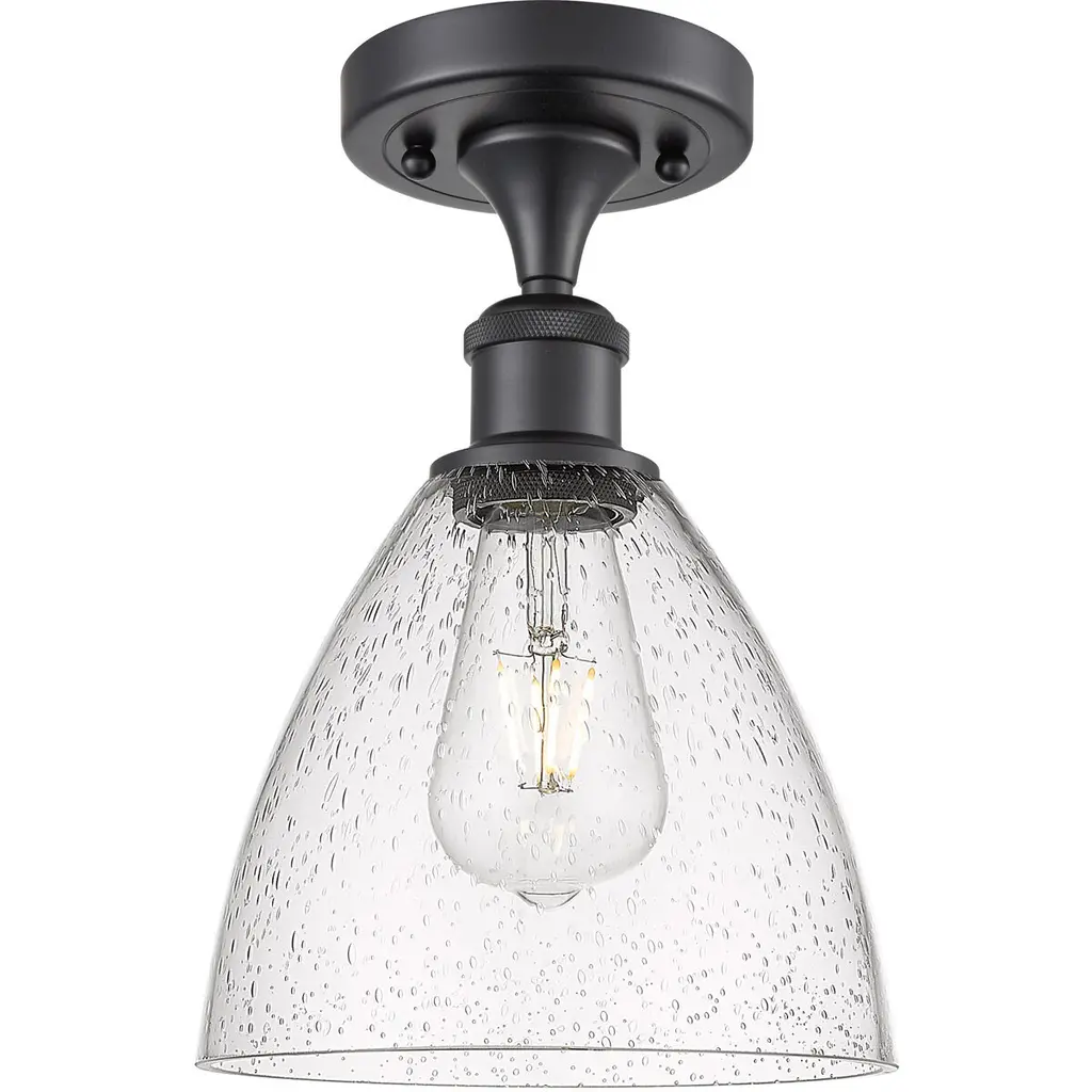 Port Nine Martini LED Semi-Flush - Matte Black - Seeded Glass - Replaceable LED