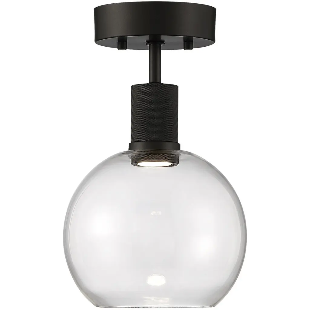 Port Nine Led 8 Inch Matte Black Semi-Flush Ceiling Light In Clear