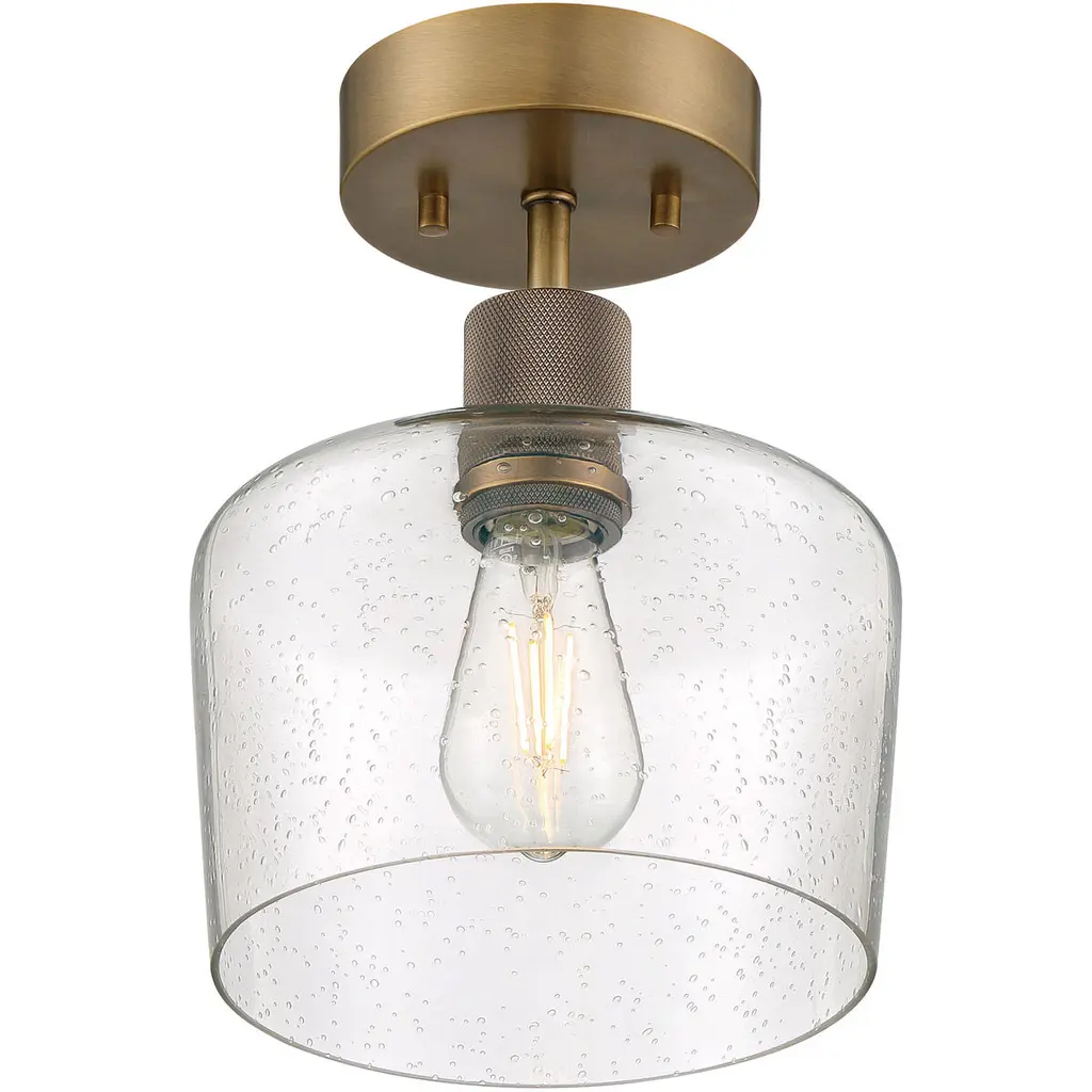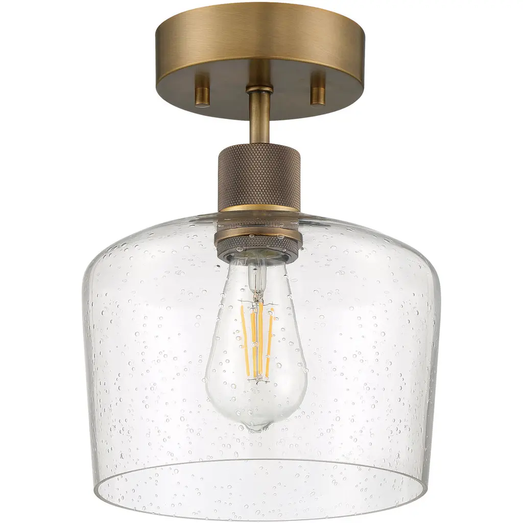 Port Nine Chardonnay LED Semi-Flush - Antique Brushed Brass - Seeded Glass - Replaceable LED