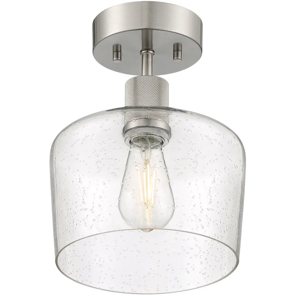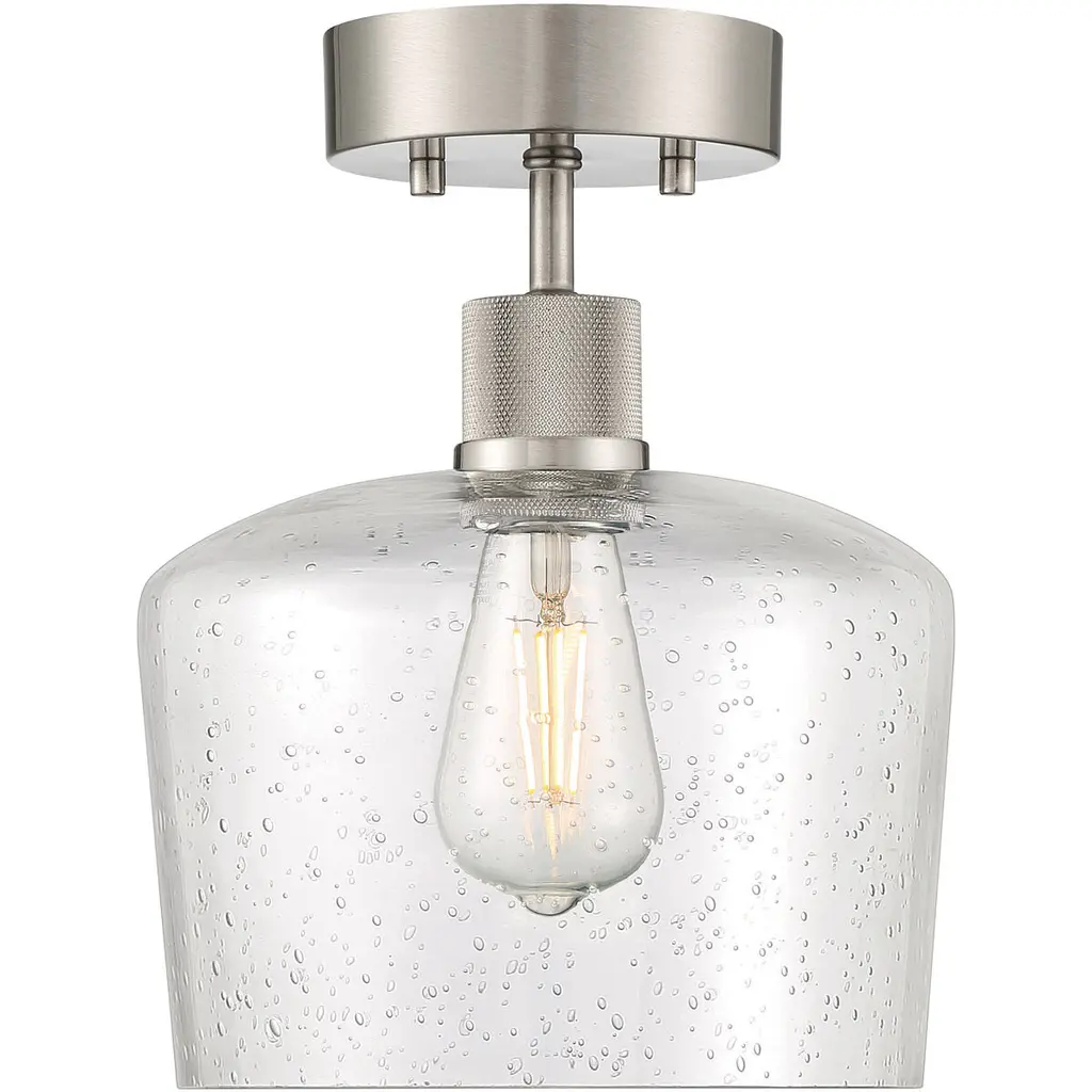 Port Nine Chardonnay LED Semi-Flush - Brushed Steel - Seeded Glass - Replaceable LED