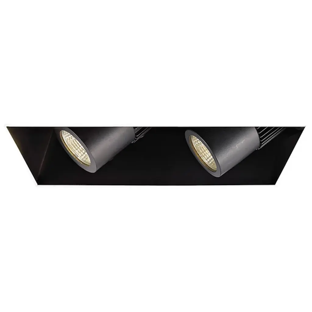 A seamless, sophisticated lighting solution for interior settings. The Precision Multiples 4" 1X2 Trim by WAC Lighting showcases a square profile and features 2 spotlights with LED lamps that offer up to 50,000 hours of bulb life. The retractable spotlights can be rotated up to 90-degrees vertically to provide directional illumination. Made from 20 gauge steel, this trim includes a die-cast aluminum heat sink that is coated with abrasion-resistant powder paint to offer protection from heat and corrosion.