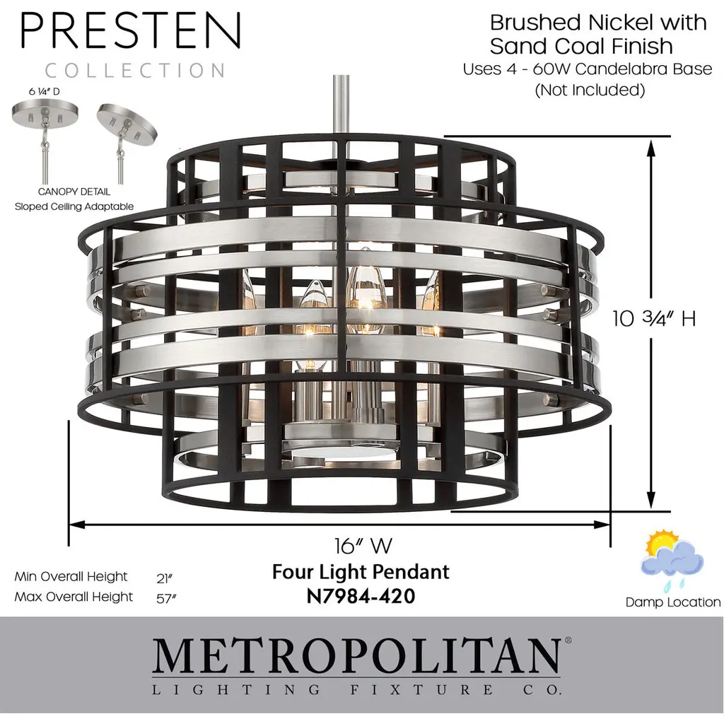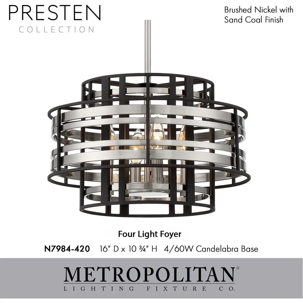 Presten 4 Light 16 Inch Brushed Nickel With Sand Coal Foyer Ceiling Light