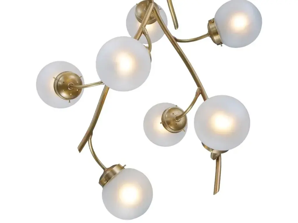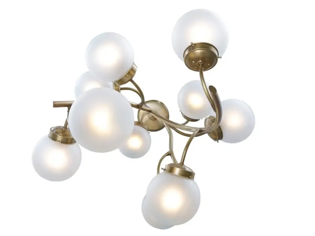 Primavera 10 is a ceiling lamp made of brass available in different finishes.Finishes: Antique, Shiny brass, Matt brass, Shiny nickel, Matt nickelCapacity: 10x75 W E27All lamps from the BOHÉM range and its 4 collections (INVERNO, PRIMAVERA, OTTONE, ECLIPSE) are handcrafted in brass (available in 5 finish variations) and customizable. Due to their variability they can be easily adapted into residential and hospitality projects.