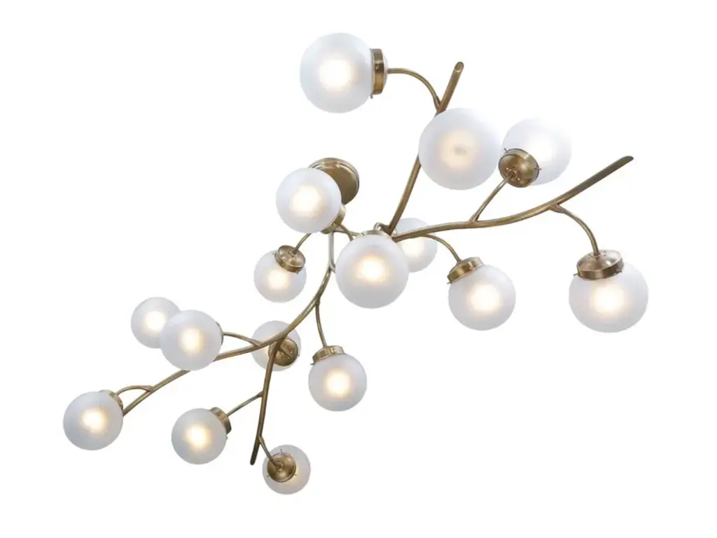 Primavera 16 is a ceiling lamp made of brass available in different finishes.Finishes: Antique, Shiny brass, Matt brass, Shiny nickel, Matt nickelCapacity: 16x75 W E27All lamps from the BOHÉM range and its 4 collections (INVERNO, PRIMAVERA, OTTONE, ECLIPSE) are handcrafted in brass (available in 5 finish variations) and customizable. Due to their variability they can be easily adapted into residential and hospitality projects.