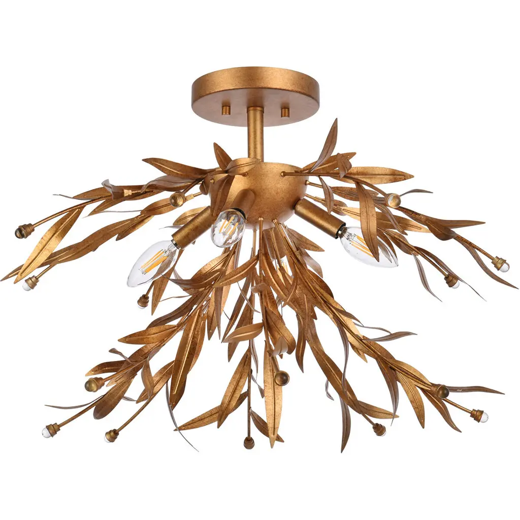 Priscilla 4 Light 23 Inch Gold Leaf Flush Mount Ceiling Light