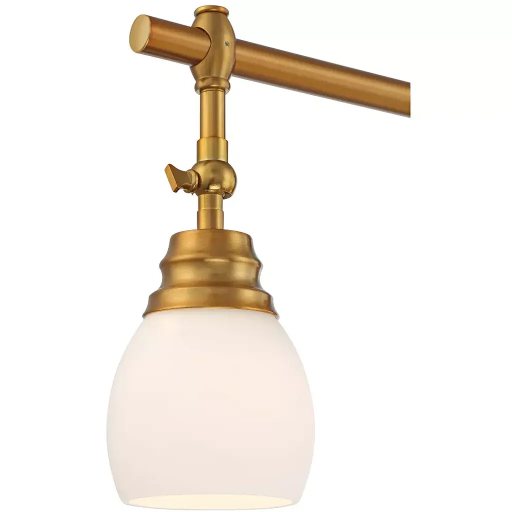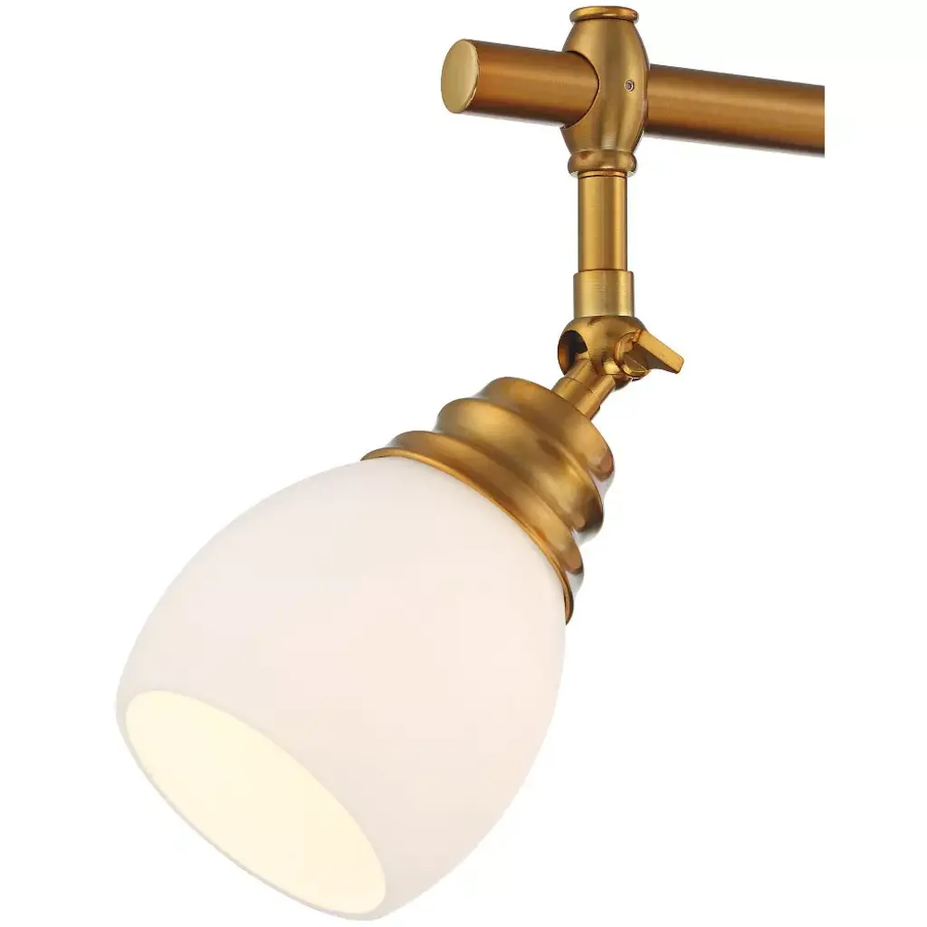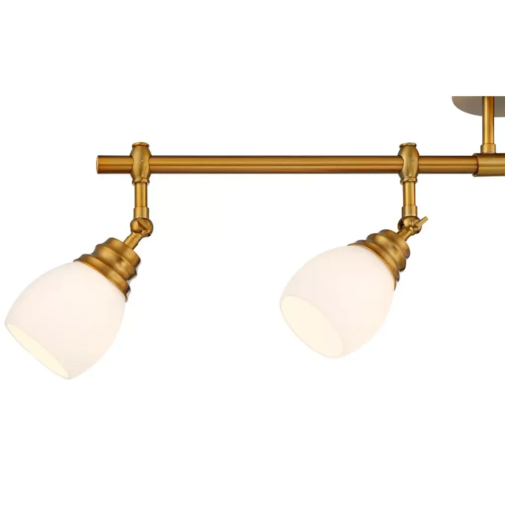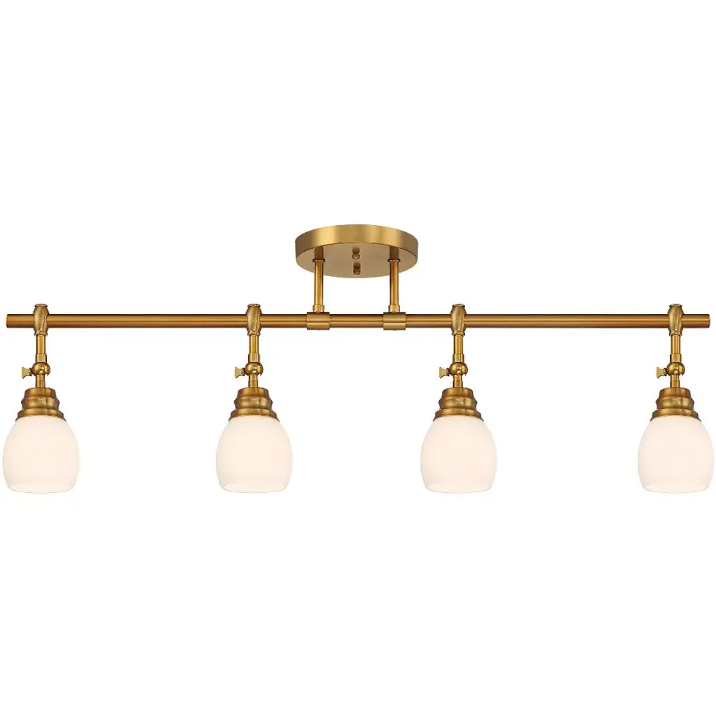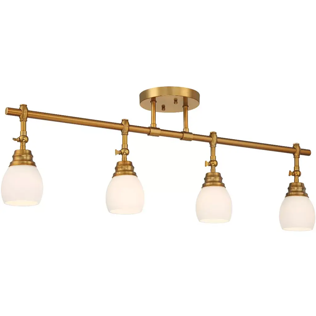 A warm gold finish highlights the sophisticated nature of this modern four-light track fixture. From Pro Track® brand and their stylish Elm Park collection, the light features a linear design perfect for a kitchen island or breakfast nook, and is accented with frosted, rounded shades for diffused illumination. Each light has an adjustable arm, perfect for delivering lighting precisely where it's needed.