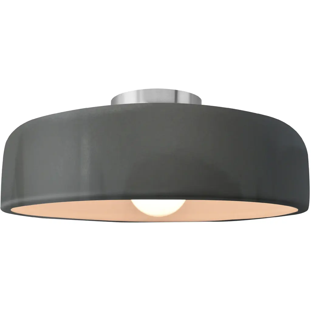 Radiance Led 16 Inch Gloss Black And Matte White And Brushed Brass Semi Flush Ceiling Light