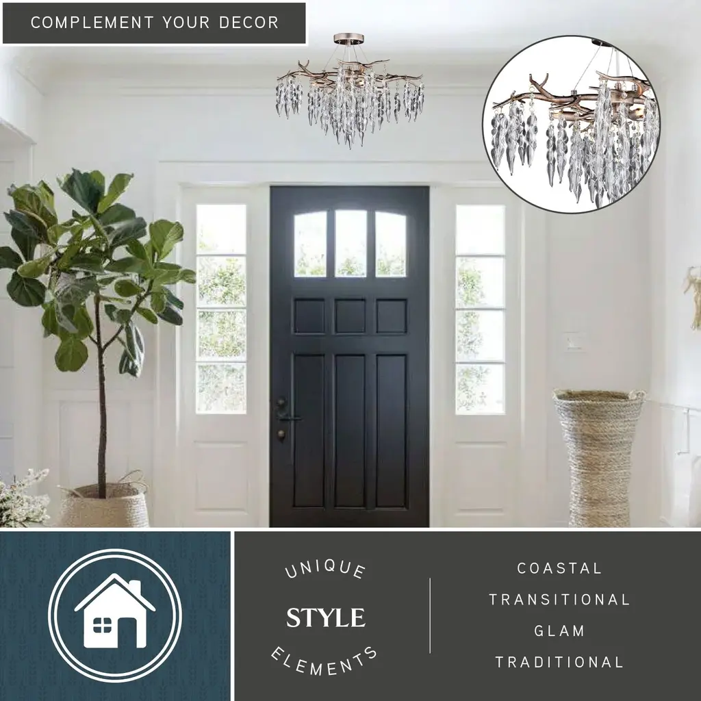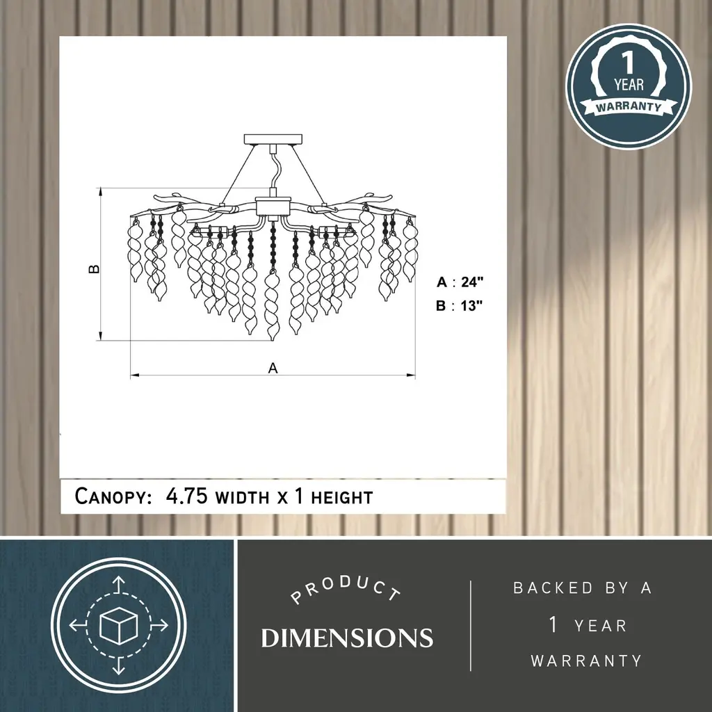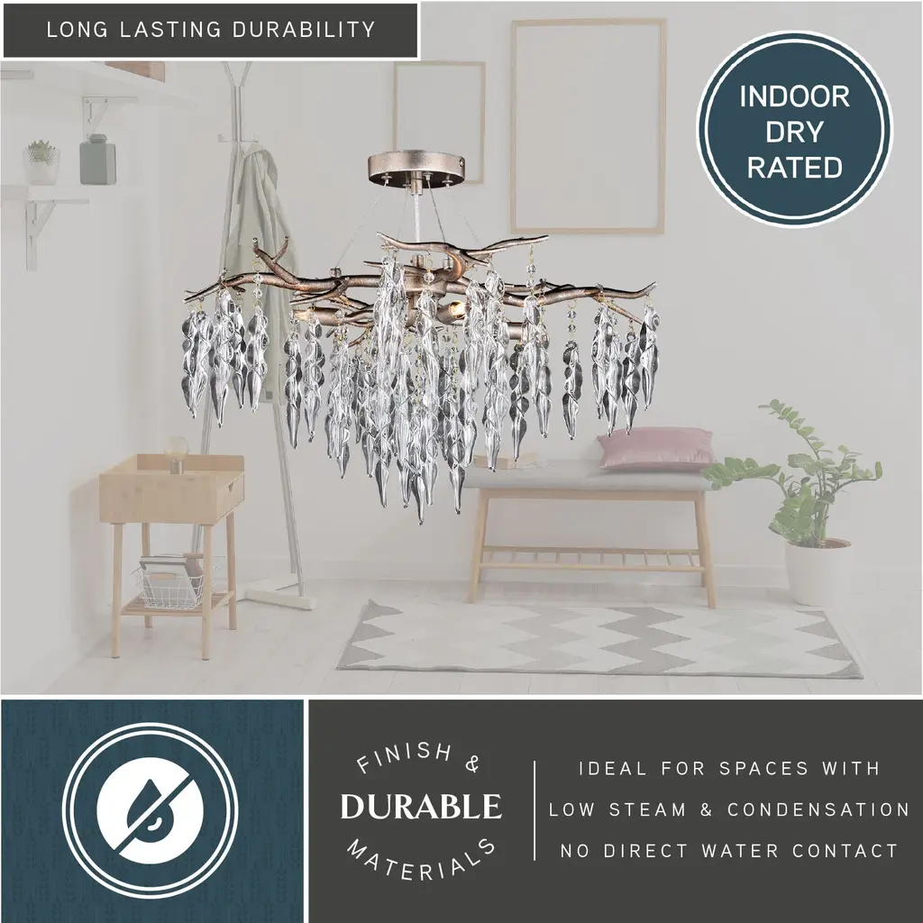 FEATURES: • Silver mist finish offers a distinctive look and quality steel construction• Crystal spires provide bright illumination and a contemporary feel• Uses 4 x 40 wattG9 bi-pin base bulbs (not included); led compatible• Dimmable for desired illumination levels when used with dimmable bulbs and compatible wall switch• 24-in W x 13-in H x 24-in D• Mounting hardware and instruction manual included for easy installation• Interior dry rated; ideal for dining rooms, kitchens, bedrooms, foyers, hallways, or any other dry area of your home• ETL, C ETL listing demonstrates this product has met requirements for product safety standards• 1 Year limited warranty