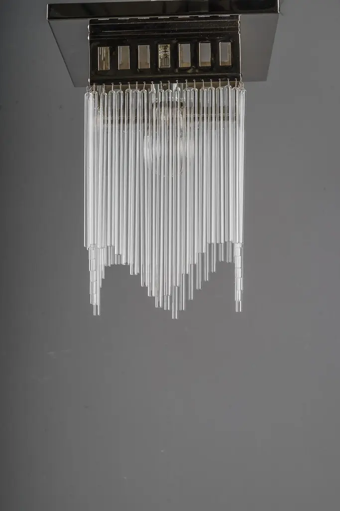 Reproduction Of A Nickel - Plated Art Deco Ceiling Lamp With Glass Sticks