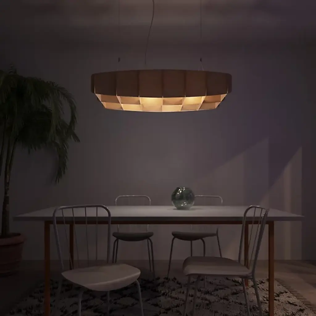 The Ristikko Linear Suspension from Pilke Lights offers Contemporary simplicity with Scandinavian refinement. Designed by Harri Koskinen and made from curving, sustainably harvested segments of Birch Plywood arranged in a grid pattern, it threads cords and lamping into the upper sections of the shade, using the natural, sustainable wood to add a sense of warmth and balance. Each piece is handmade in Finland and floats from slim cable, casting a mix of warm ambiance and direct downlight below.