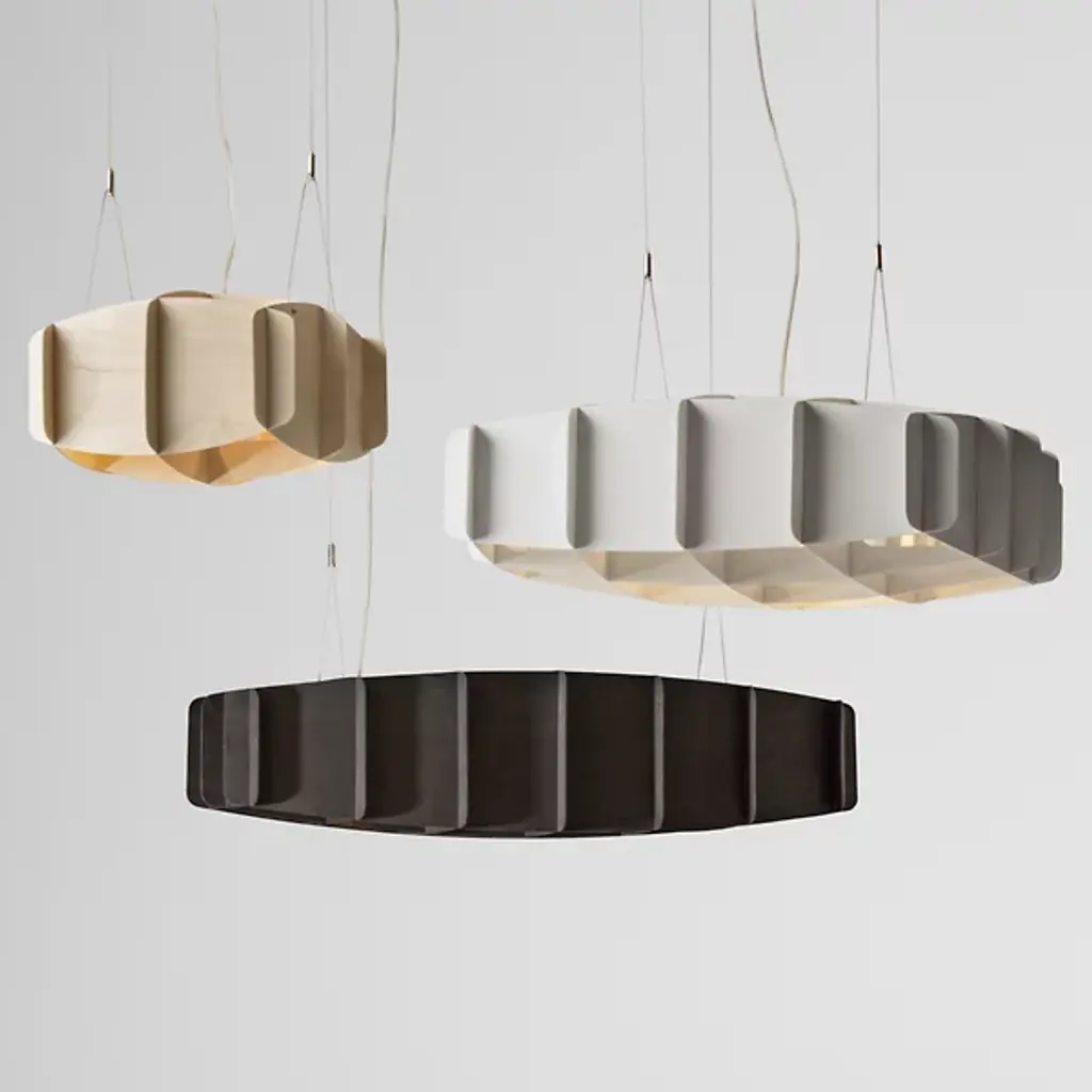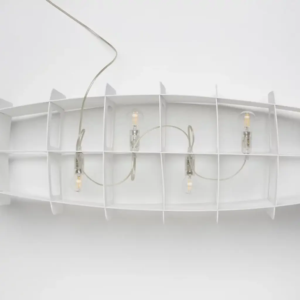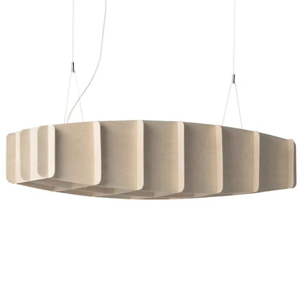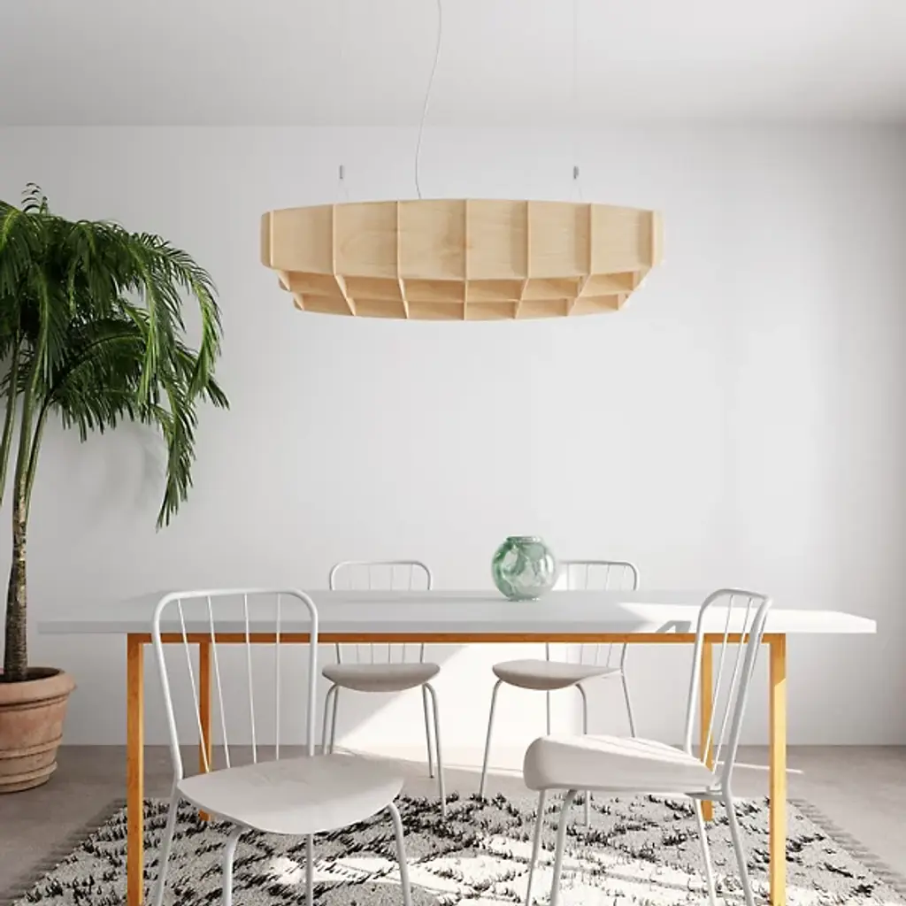 The Ristikko Linear Suspension from Pilke Lights offers Contemporary simplicity with Scandinavian refinement. Designed by Harri Koskinen and made from curving, sustainably harvested segments of Birch Plywood arranged in a grid pattern, it threads cords and lamping into the upper sections of the shade, using the natural, sustainable wood to add a sense of warmth and balance. Each piece is handmade in Finland and floats from slim cable, casting a mix of warm ambiance and direct downlight below.