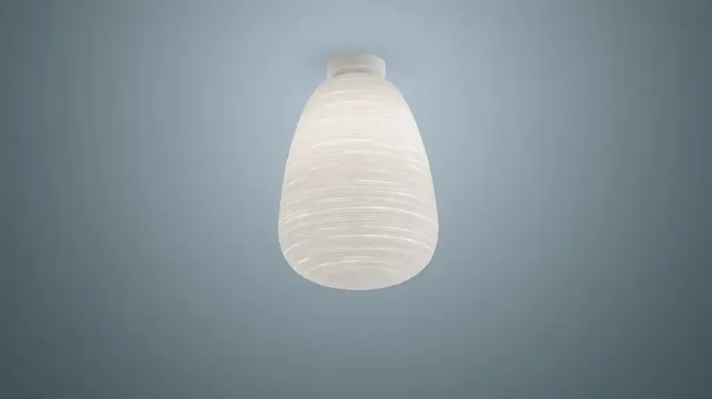 Rituals 1 is a ceiling lamp made of blown engraved satin glass and varnished metal.LIGHT SOURCE220 / 240 VLED retrofit included11W E27Dimmable TRIACIP 20The luminous magic of oriental rice paper lanterns, translated into contemporary design made with precious handcrafted blown glass enhanced by slender incisions, made with a refined technique. The horizontal lines are decorative, but also serve to spread warm, subtle radiance.