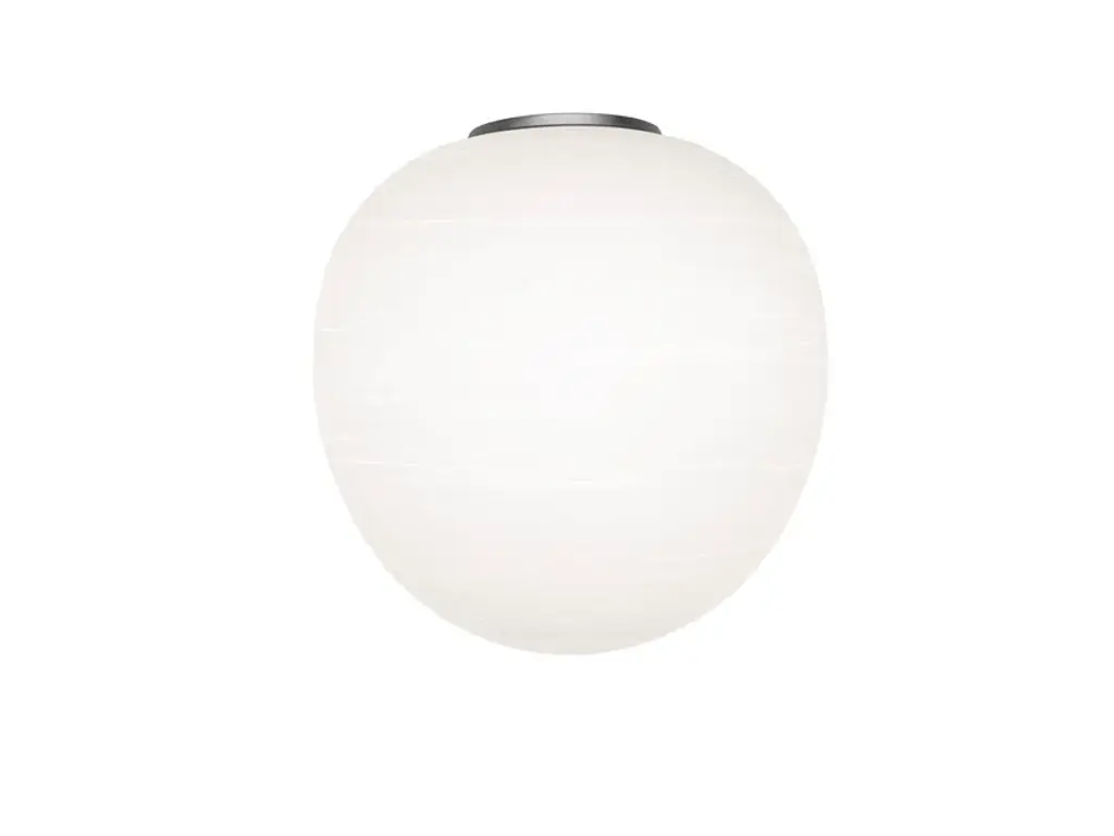 Rituals 3 is a ceiling lamp made of blown engraved satin glass and varnished metal.LIGHT SOURCE220 / 240 VLED retrofit included, 11W E272700K, 1521 lm, CRI>80Dimmable TRIACIP 20The luminous magic of oriental rice paper lanterns, translated into contemporary design made with precious handcrafted blown glass enhanced by slender incisions, made with a refined technique. The horizontal lines are decorative, but also serve to spread warm, subtle radiance.