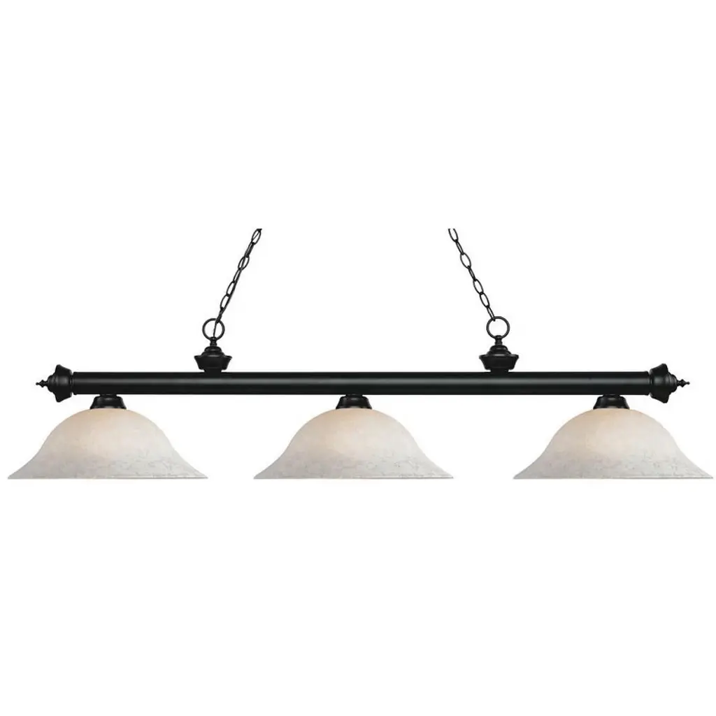 Riviera 3 Light 59 Inch Matte Black Billiard Ceiling Light In White Mottle Glass, 17.95
