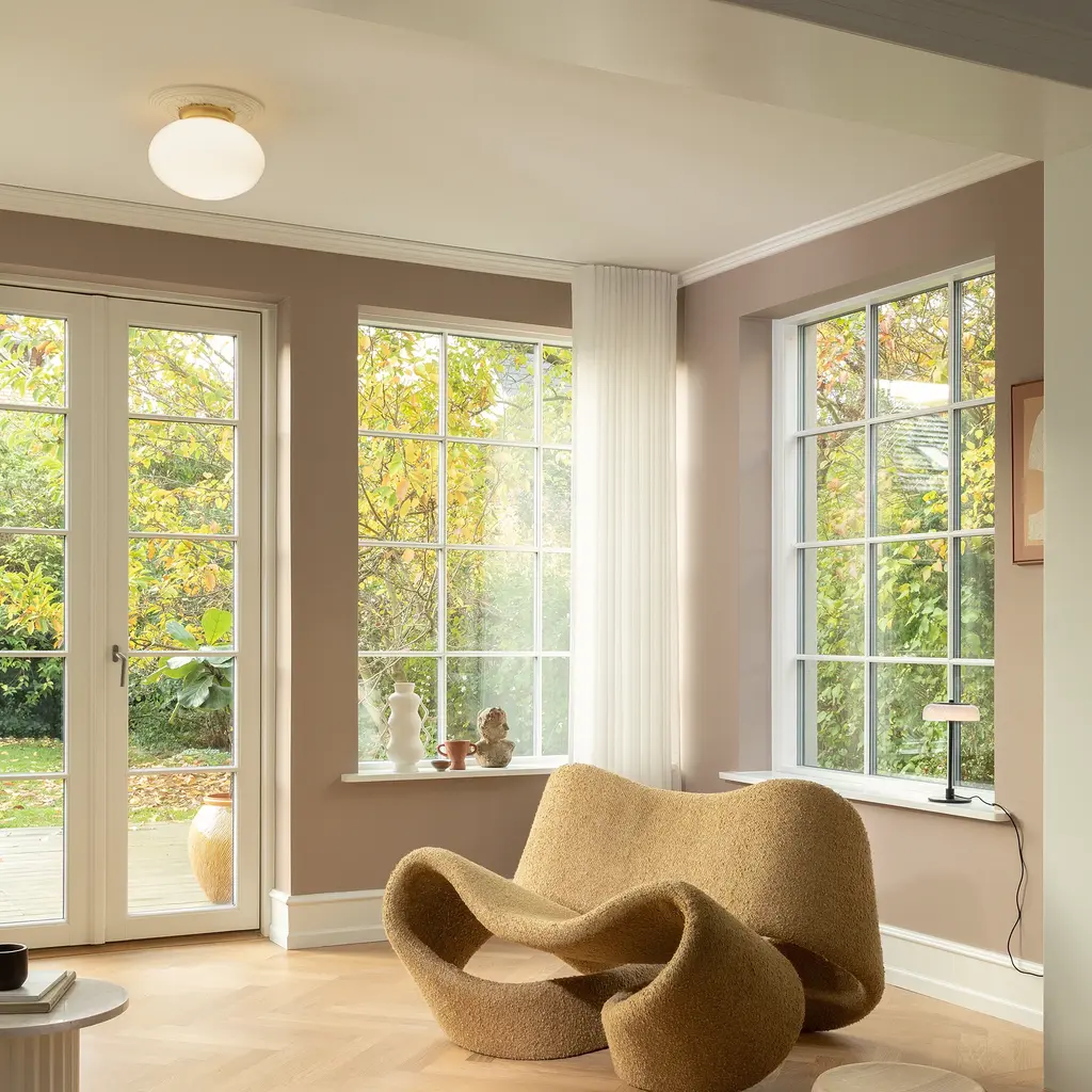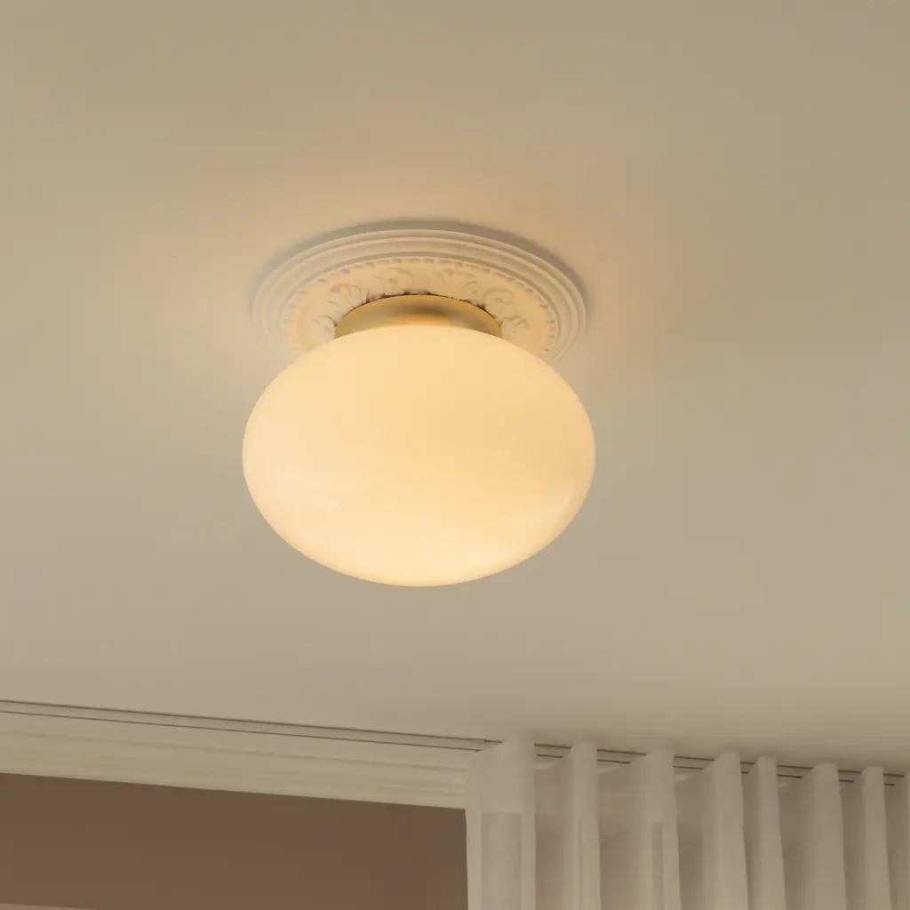 The 301 Wall/Ceiling Light showcases an elliptical, mouth-blown opal glass shade that casts a soft, inviting glow. Set on a satin brass or silver base, this fixture fits seamlessly into a variety of spaces, from cozy alcoves to hallways. Designer Paolo Rizzatto, inspired by his famous Rizzatto 32 chandelier, incorporates clean, simple lines that give the piece both subtlety and impact.