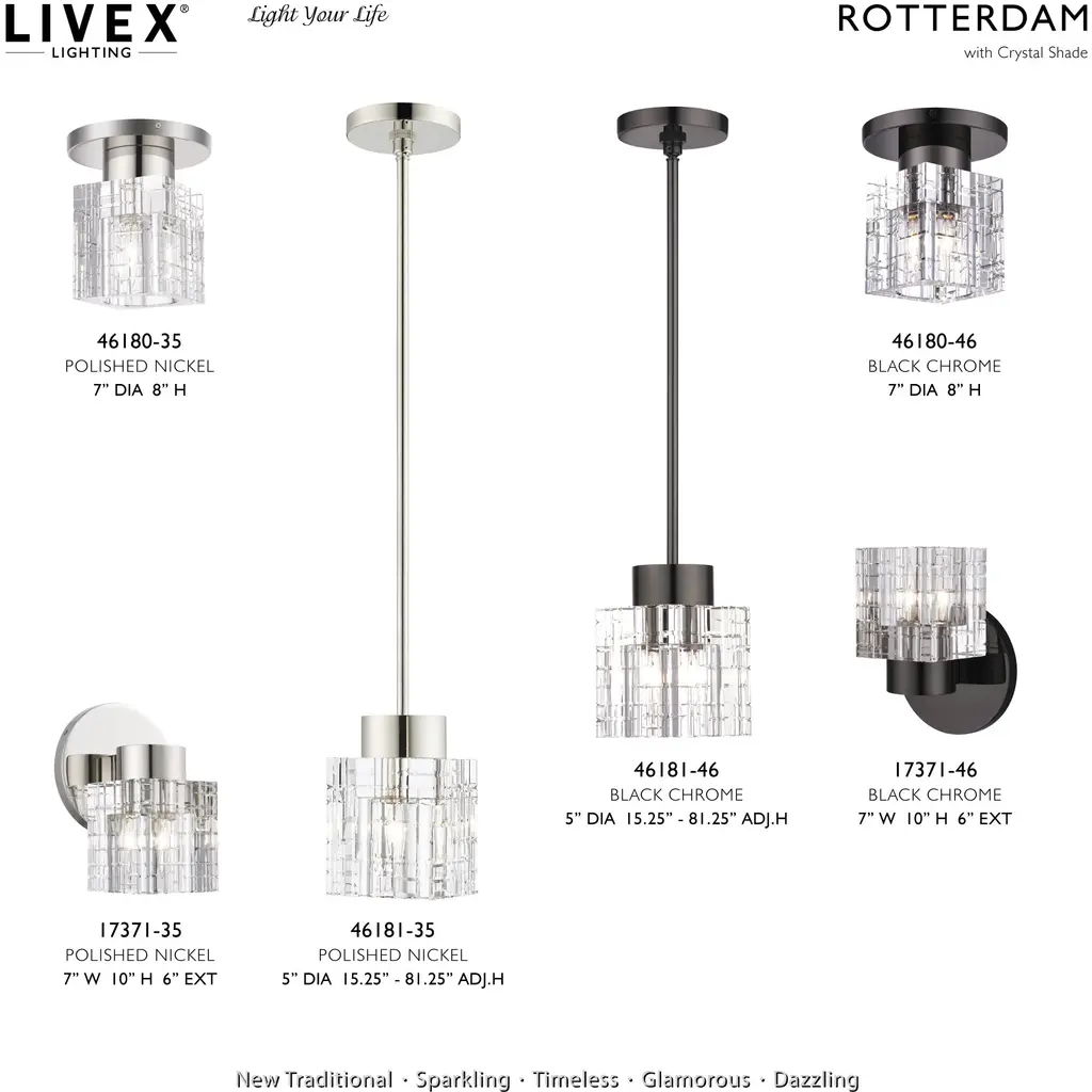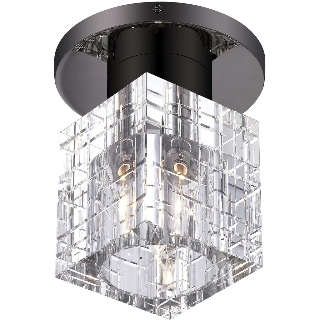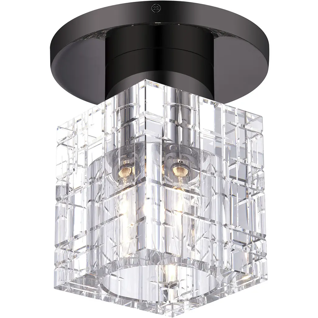 Rotterdam 1 Light 7 Inch Black Chrome Crystal Semi-Flush Ceiling Light