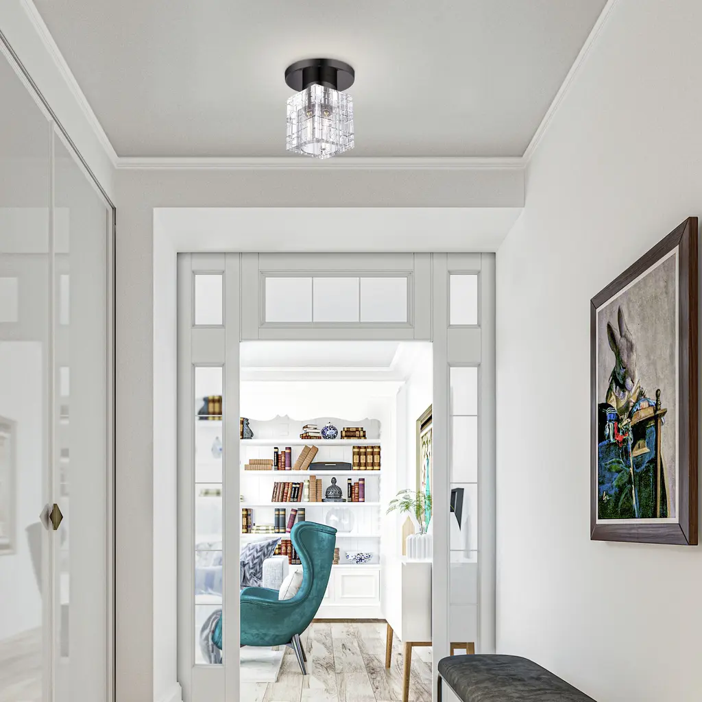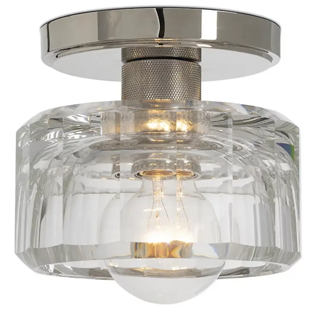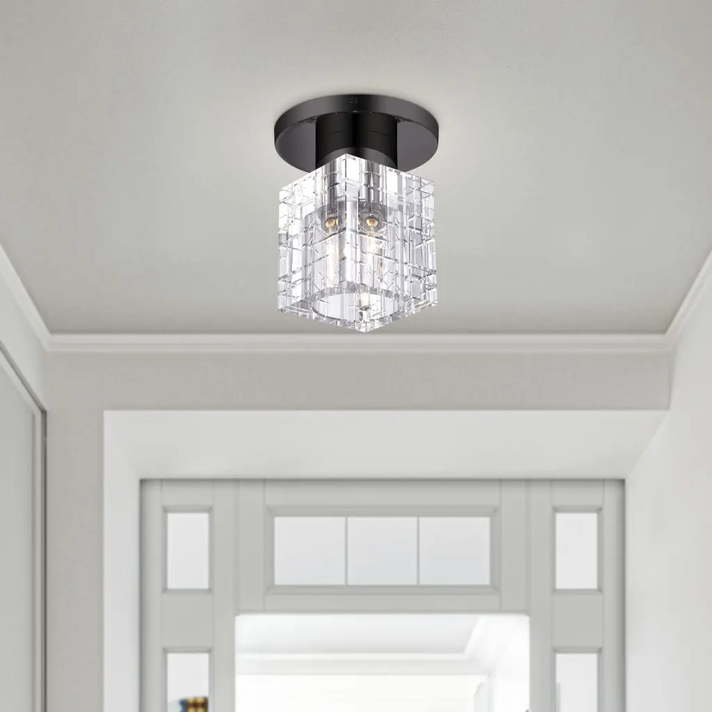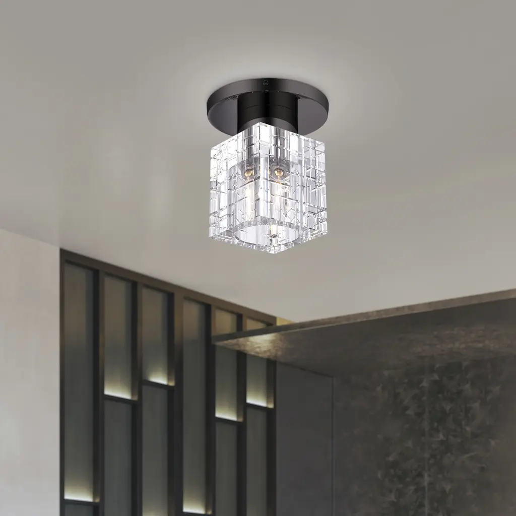 Rotterdam 1 Light 7 Inch Black Chrome Crystal Semi-Flush Ceiling Light