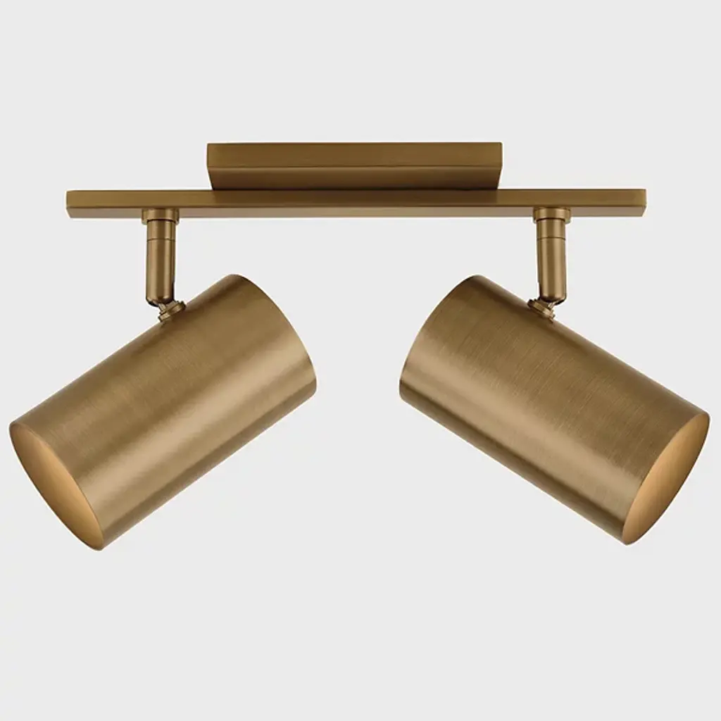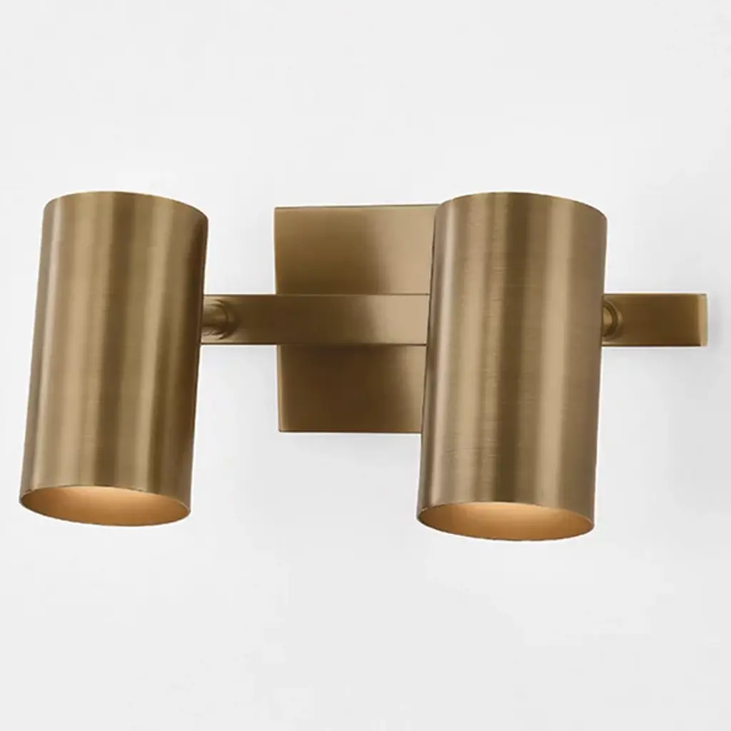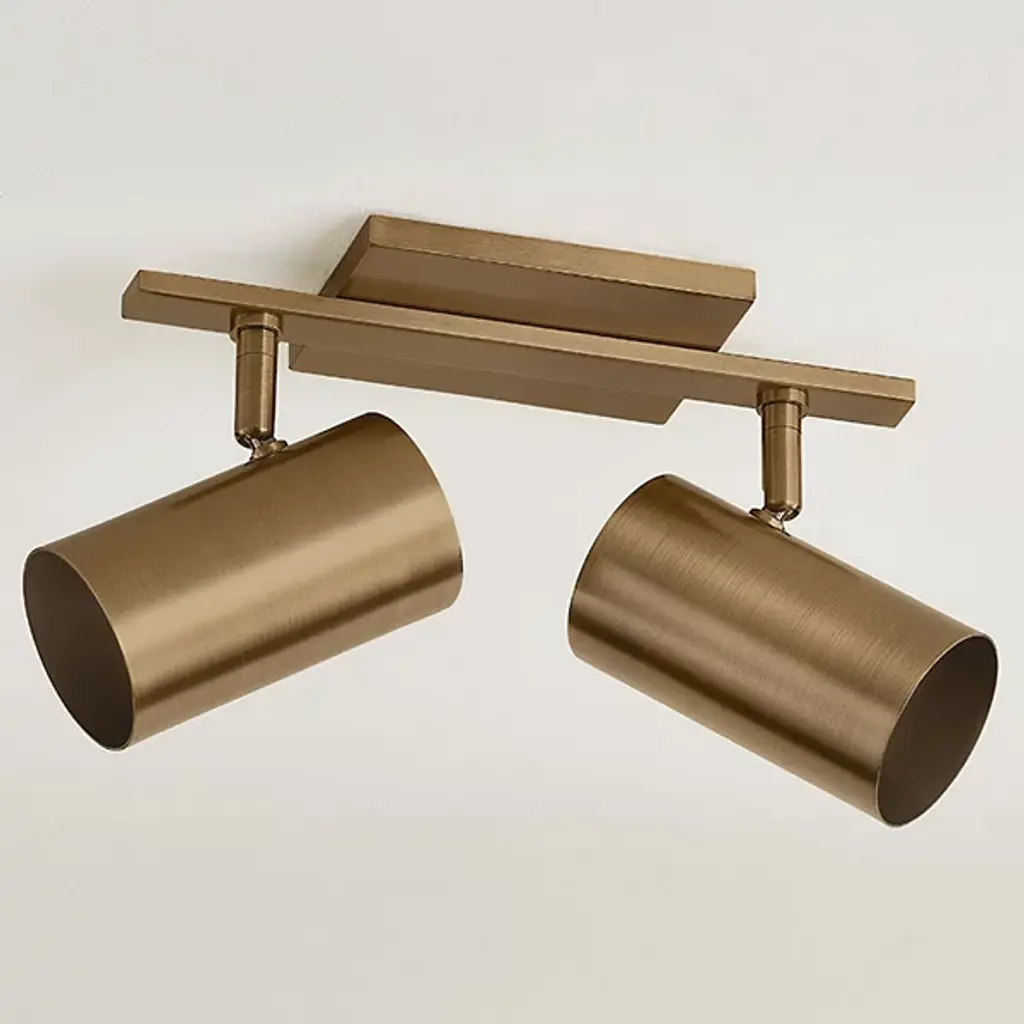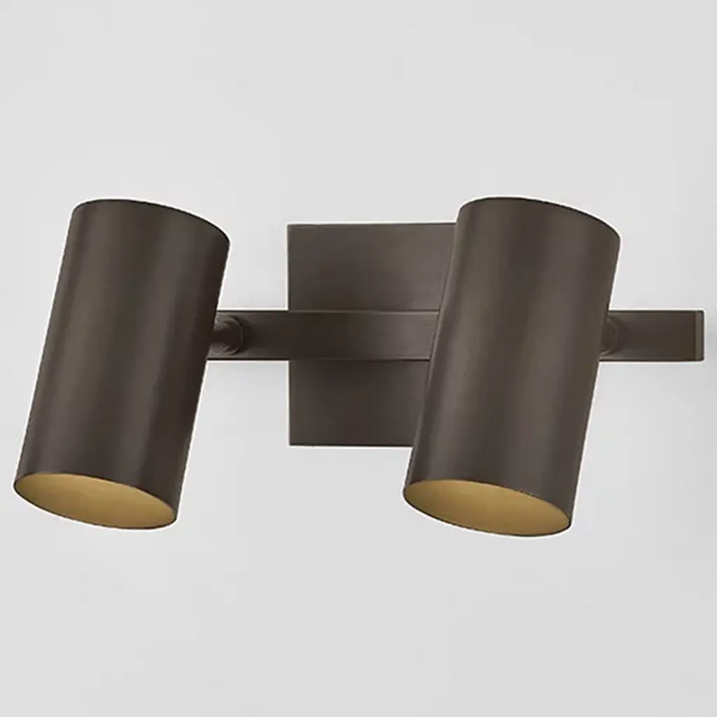 The Rueben Wall / Ceiling Light from Troy Lighting modernizes bathroom lighting with its adaptable directional capabilities and clean industrial aesthetic. Twin cylindrical shades mounted on a rectangular backplate allow for precise light positioning, making it ideal for vanity illumination. Each shade rotates independently to target specific areas, providing optimal lighting for daily tasks. The steel construction ensures longevity in humid environments, maintaining its pristine appearance despite frequent use. Mid-century design influences appear in the conical shapes and right angles, making this fixture particularly compatible with modernist architecture. This adjustable lighting solution excels in bathrooms but works equally well in hallways or as accent lighting in living spaces.