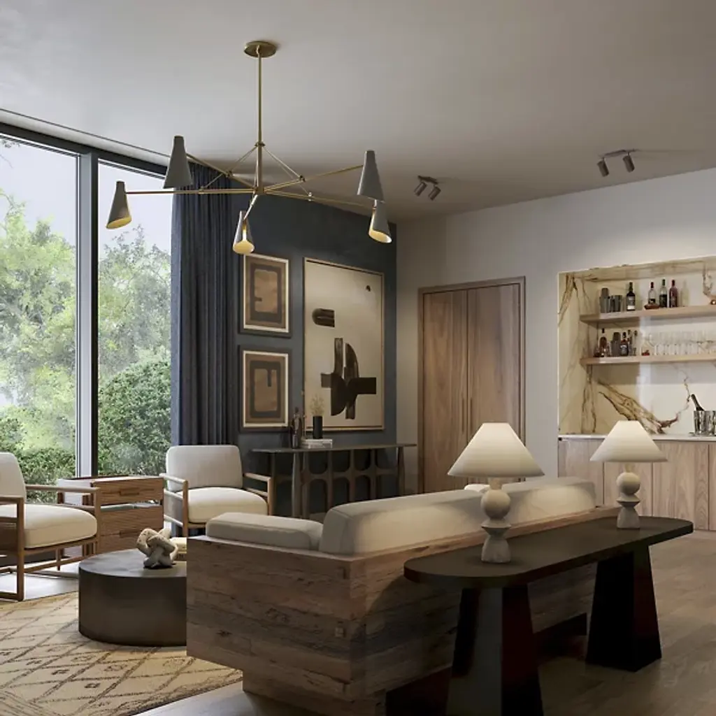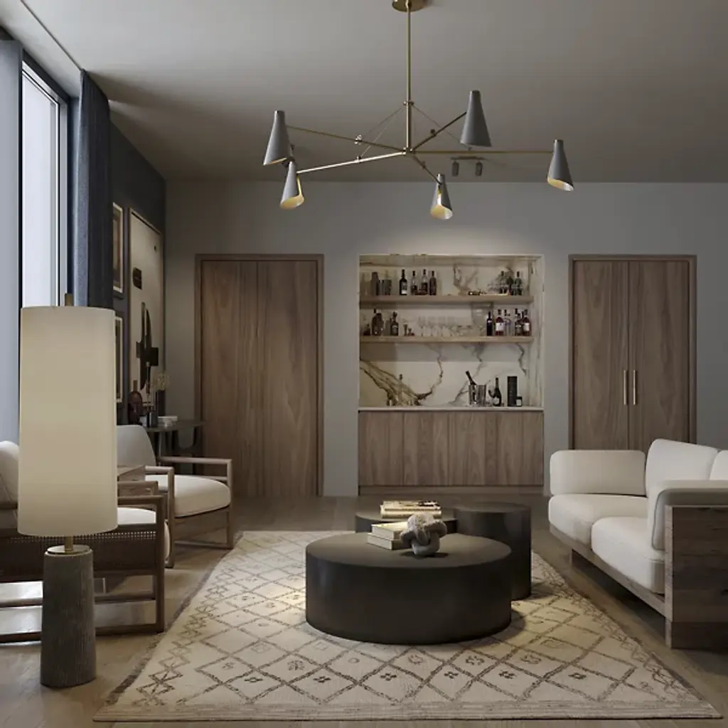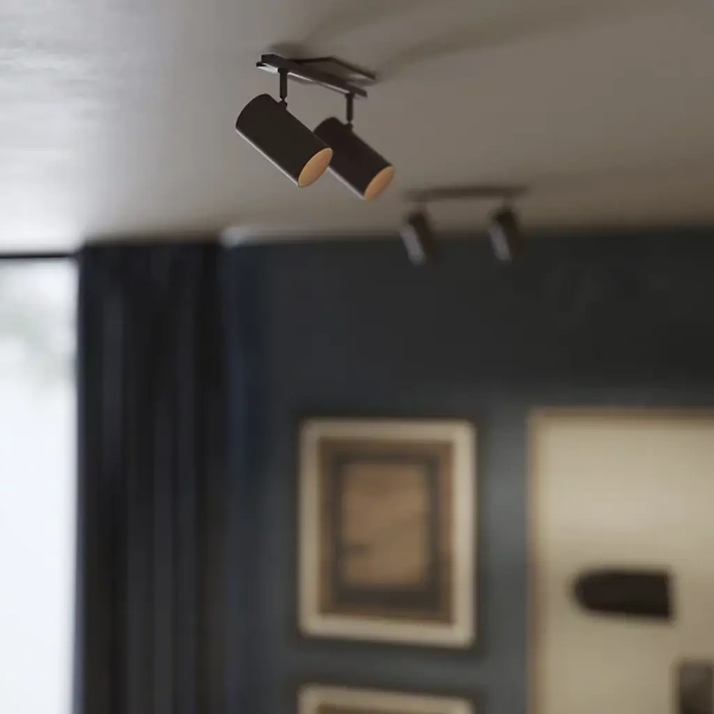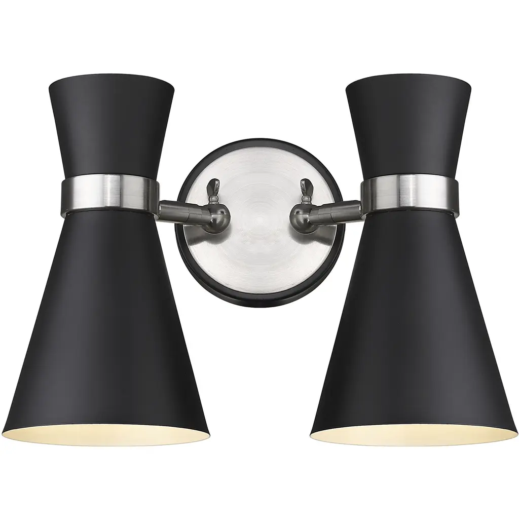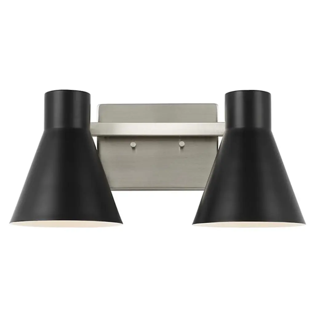 The Rueben Wall / Ceiling Light from Troy Lighting modernizes bathroom lighting with its adaptable directional capabilities and clean industrial aesthetic. Twin cylindrical shades mounted on a rectangular backplate allow for precise light positioning, making it ideal for vanity illumination. Each shade rotates independently to target specific areas, providing optimal lighting for daily tasks. The steel construction ensures longevity in humid environments, maintaining its pristine appearance despite frequent use. Mid-century design influences appear in the conical shapes and right angles, making this fixture particularly compatible with modernist architecture. This adjustable lighting solution excels in bathrooms but works equally well in hallways or as accent lighting in living spaces.