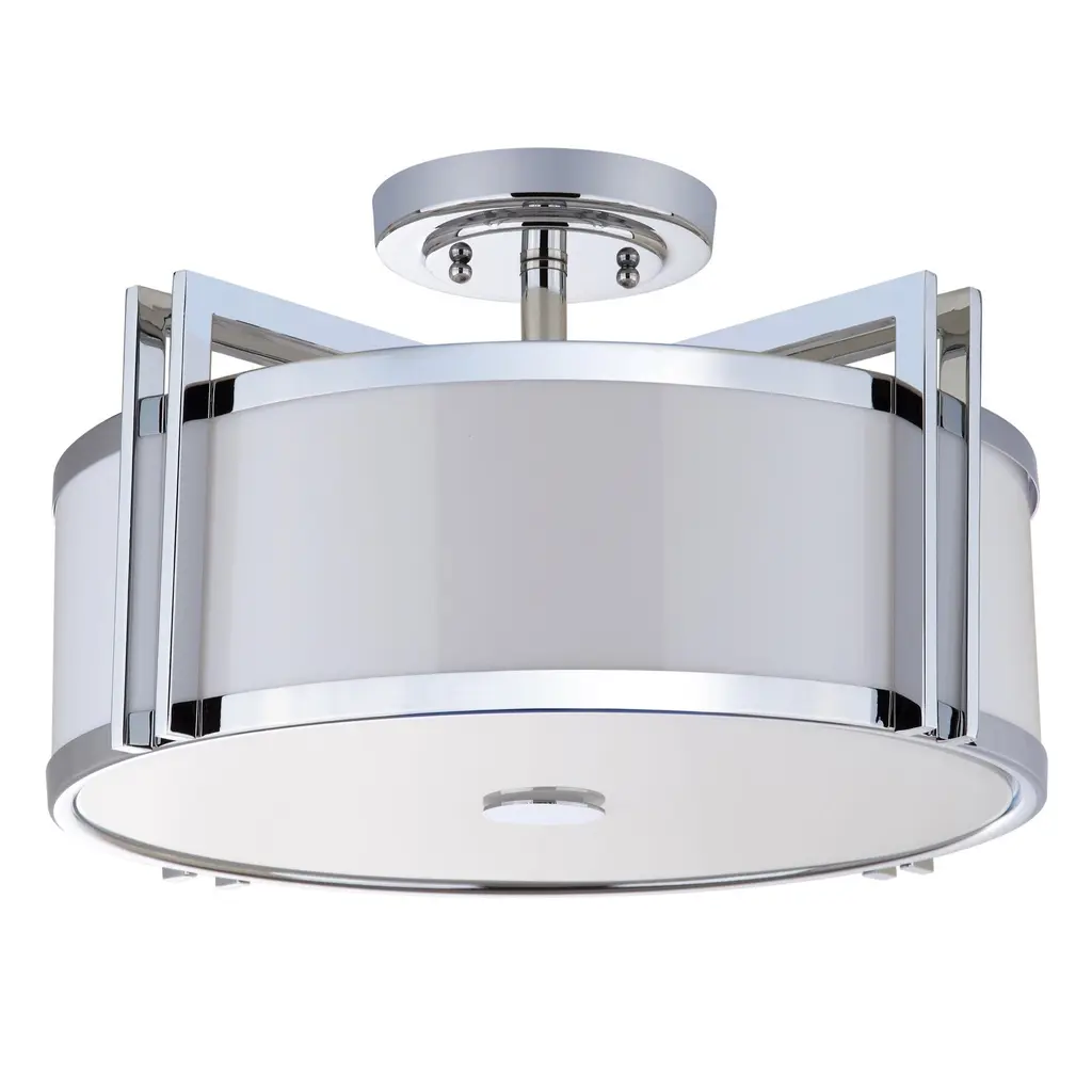 Classic lines influenced by Arts & Crafts style define the Orb ceiling light as a stylish addition to a hall or kitchen. This handsome fixture combines a cream acrylic drum shade with straight-lined metal body and trim in chrome finished steel.