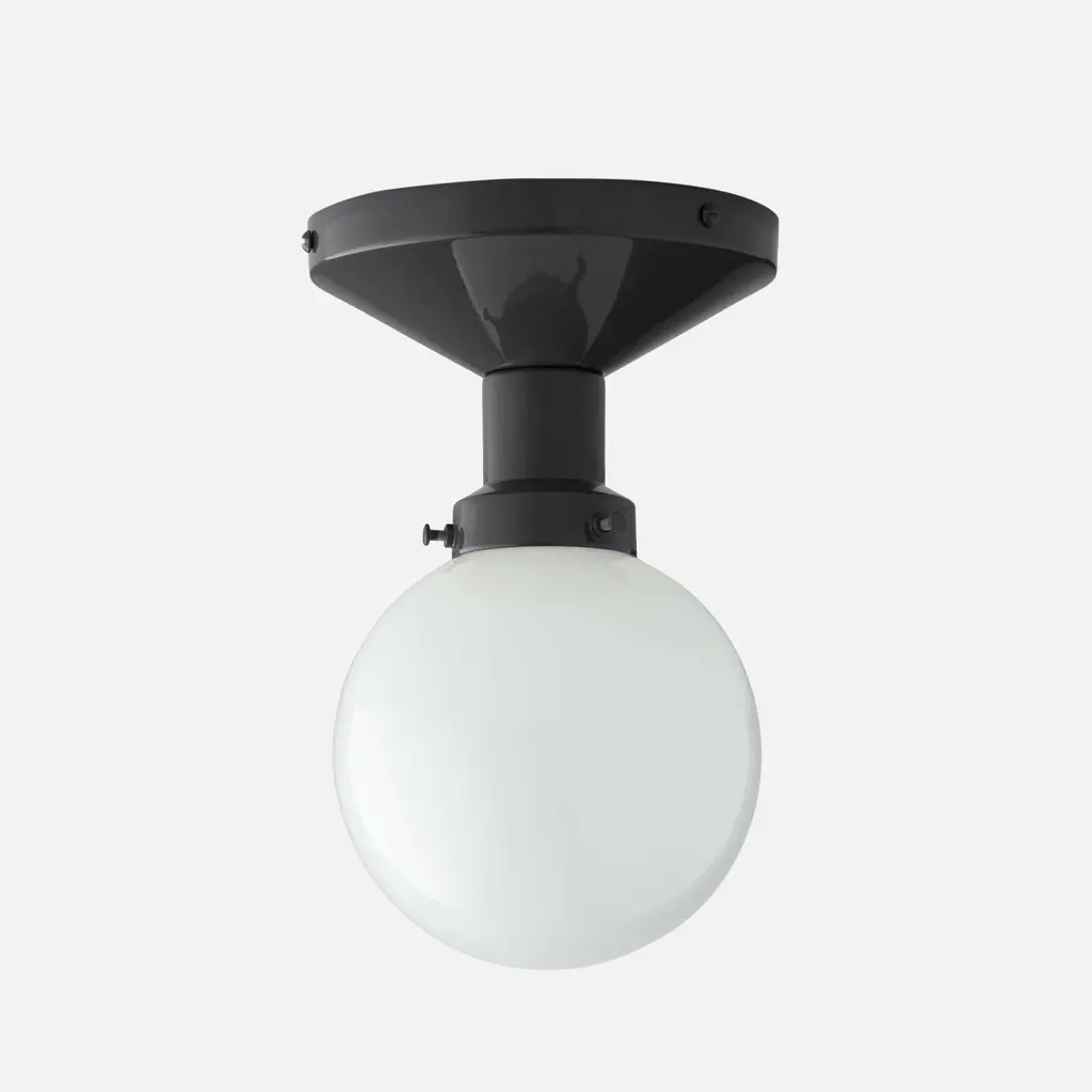Inspired by lanterns found on fishing boats, the Marset Santorini Outdoor Ceiling Light is a dynamic beacon of light with customizable shades and a long half-oval glass diffuser. The optical quality of the pressed glass distorts and filters the light, creating reflective illumination between the two shades. Both shades (one small and one large in the same color) can be configured to change the look and distribution of light—you can decide the number of shades, direction and arrangement on the cylindrical white diffuser that shields part of the glass.