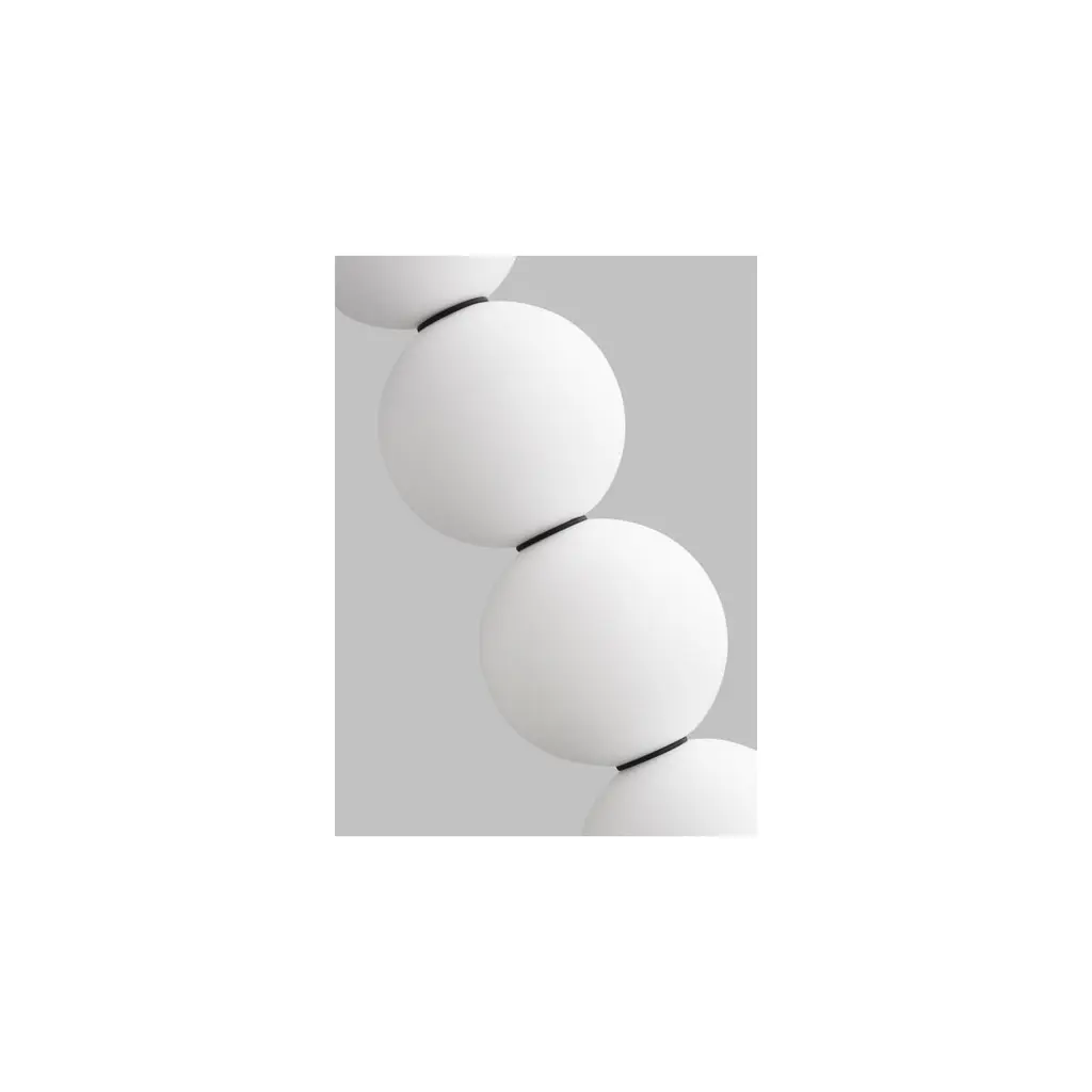 The Orbet 5-Light Line-Voltage Pendant by Sean Lavin is inspired by the classic pearl with perfectly stacked milk glass orbs. LED illumination through milk-glass provides a soft diffused aesthetic and each orb is accented by a thin contrasting metal band. This fixture is the perfect design for hanging individually or clustering in multiples for a dramatic effect.