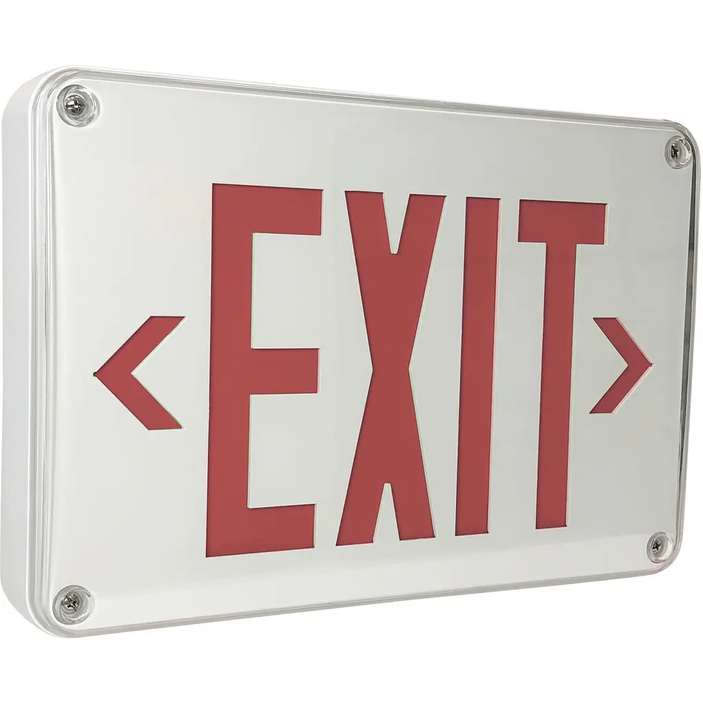 LED Self-Diagnostic Wet Location Exit Sign w/ Battery Backup, White Housing w/ Green Letters