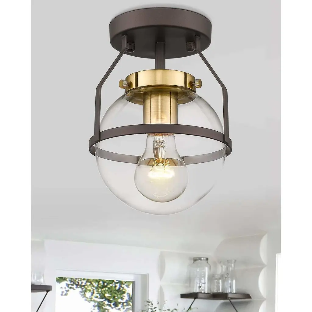 Semi Flush Mount Ceiling Light With Clear Globe Glass Shade - N/a - Orb/gold