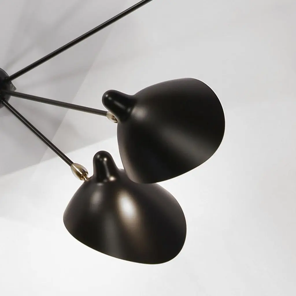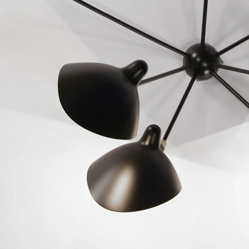 Serge Mouille Mid-Century Modern Black Seven Fixed Arms Spider Wall Ceiling Lamp