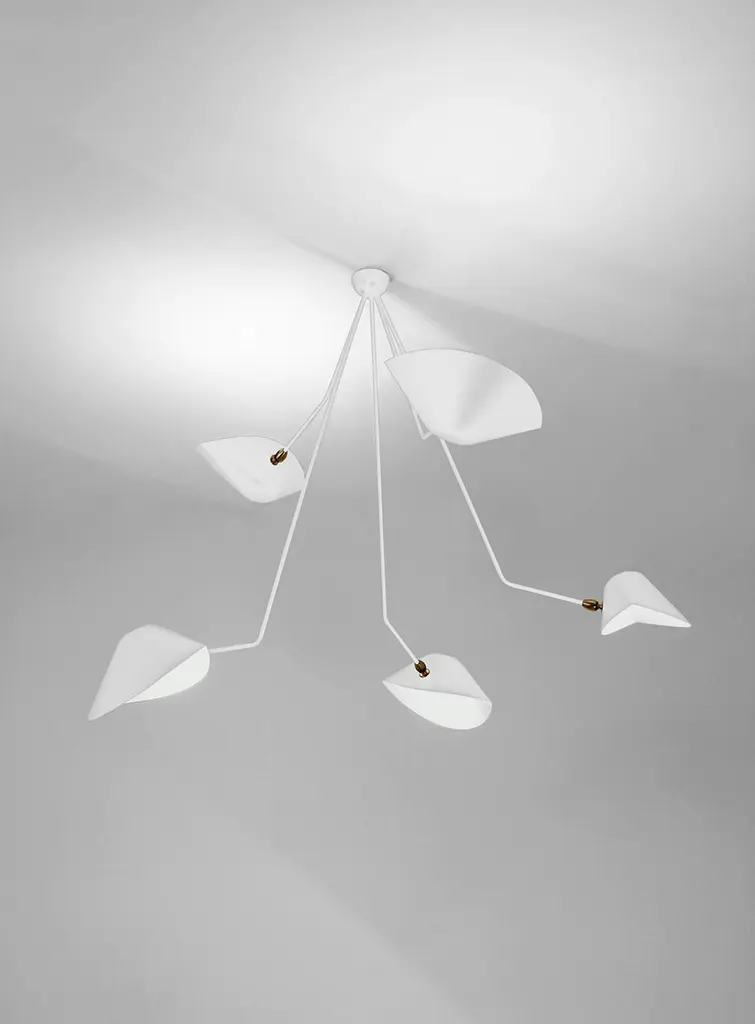Serge Mouille - Spider Ceiling Lamp With 5 Falling Arms In White