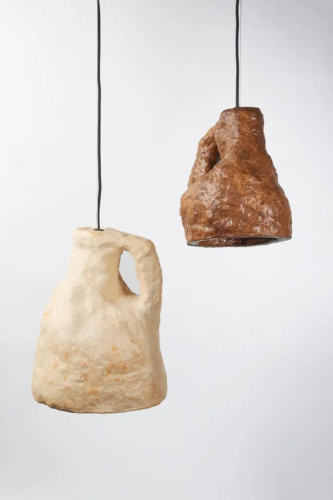 Set of 2 Dual Lamps by Willem Van HooffDimensions: W 25 x H 30 cm // W 35 x H 50 cm (Dimensions may vary as pieces are hand-made and might present slight variations in sizes)Materials: Earthenware, ceramic, pigments and glazeAlso available in different colours: oker, terra, ivory, brown. All our lamps can be wired according to each country. If sold to the USA it will be wired for the USA for instance.Willem van Hooff is a designer based in Eindhoven.He is a driven builder, were he likes to see design as his tool to express a remember stories.He is fascinated how objects; buildings or traditions can capture stories.His stories always come from my interest in history, the start of all his design projects. He likes to work with these old stories, techniques, cultures and give them new life in contemporary products.He feels the need to bring more freedom and joy back in making.He thinks this is lacking a certain form of imperfection, joy and traditions. Whichare not based on our consumerism world.