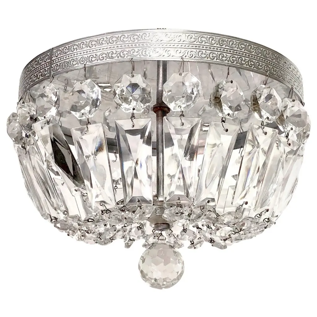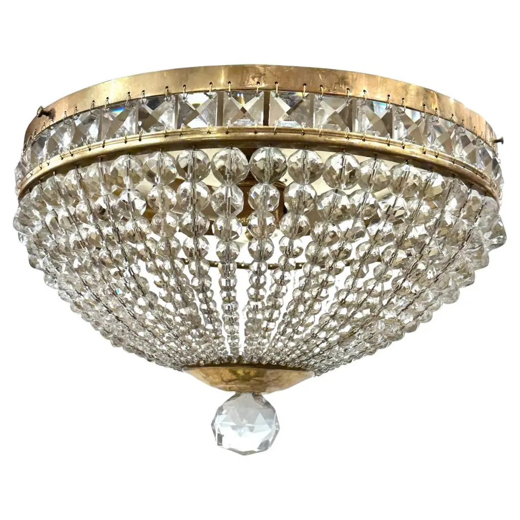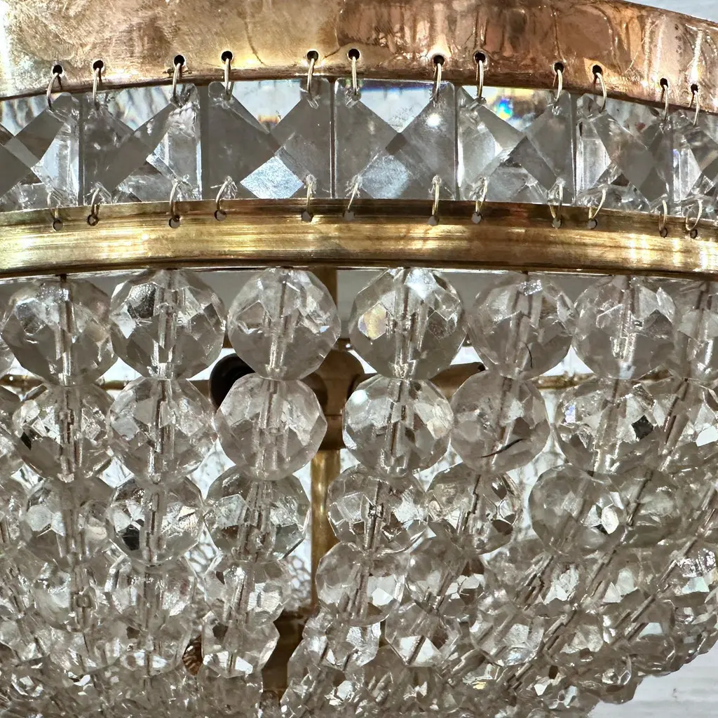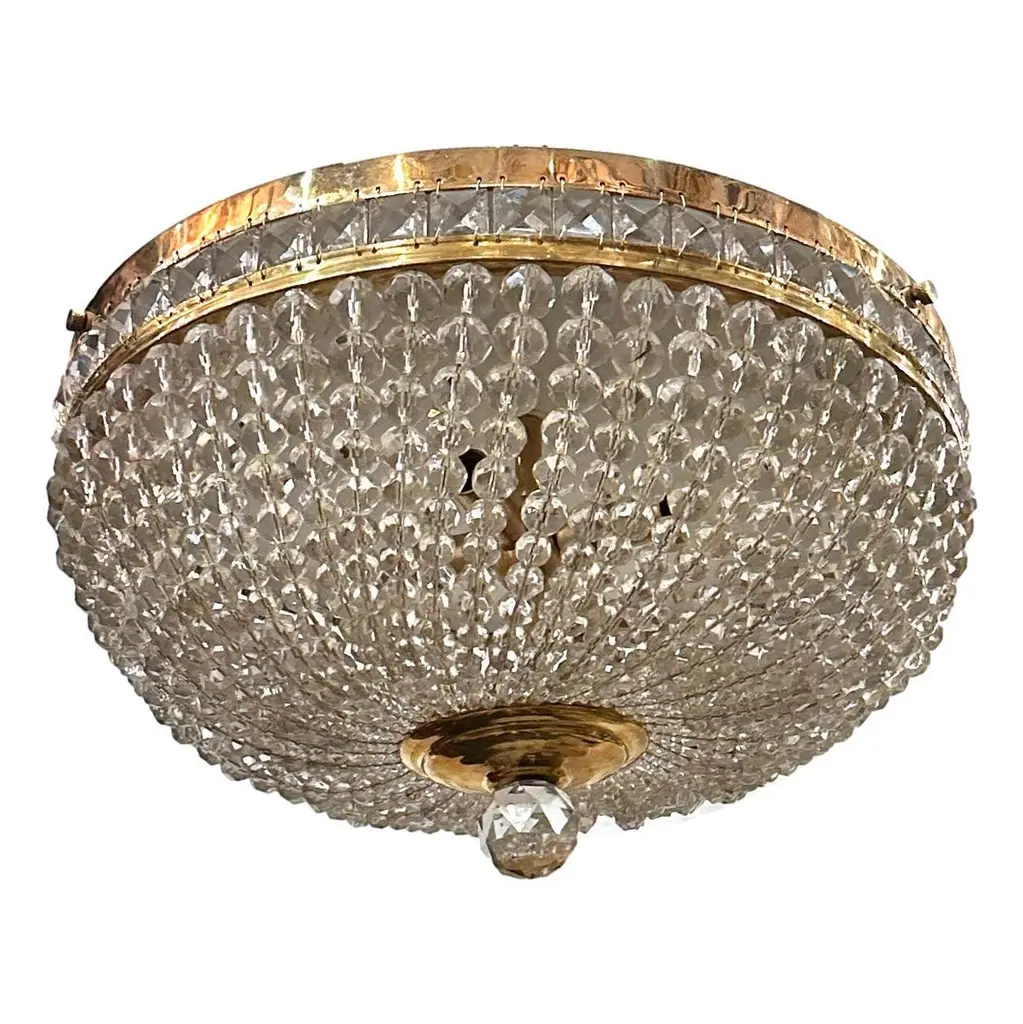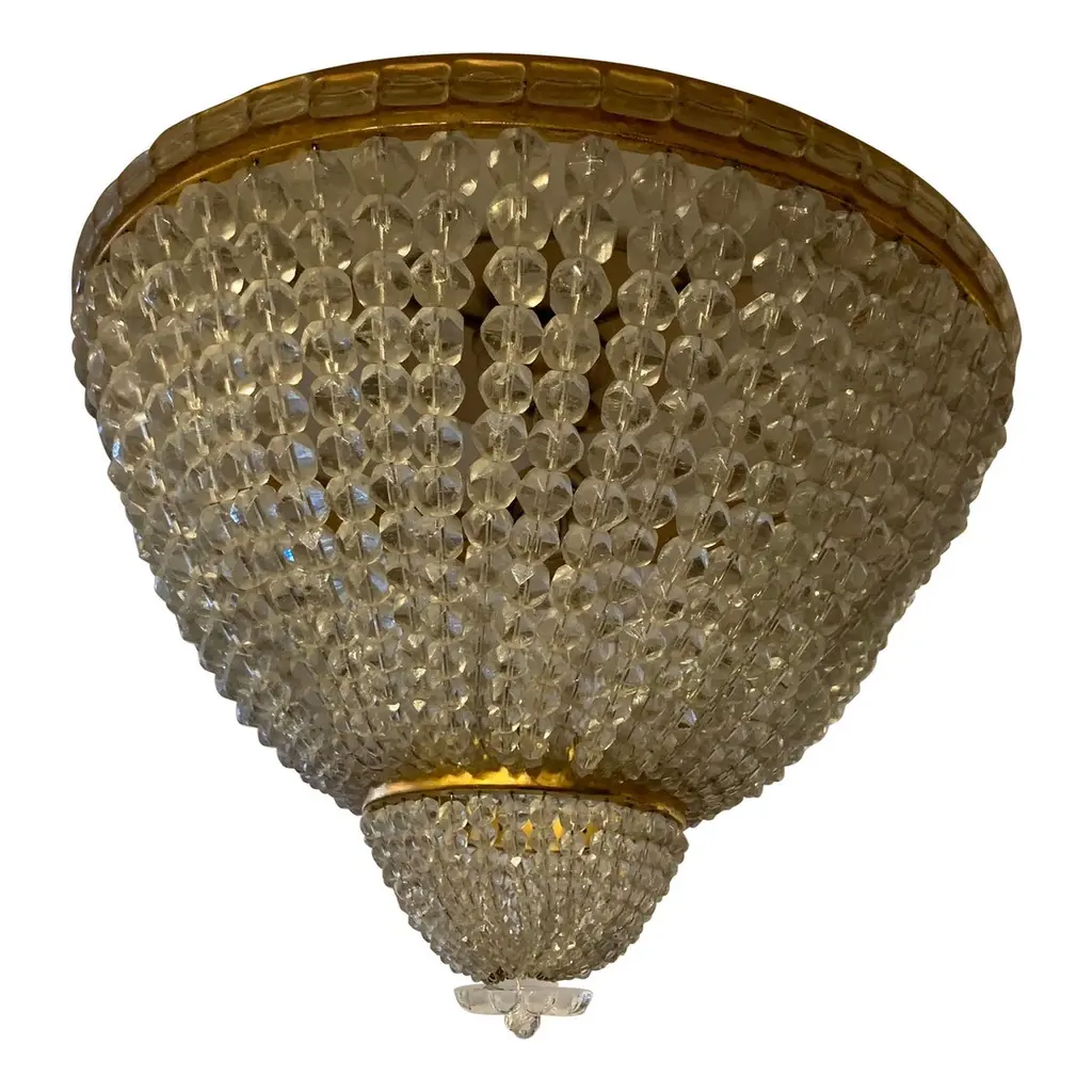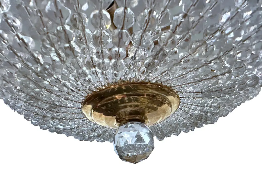 Set of 4 French circa 1950's crystal light fixtures with 4 interior lights.Measurements:Drop: 9"Diameter 16"