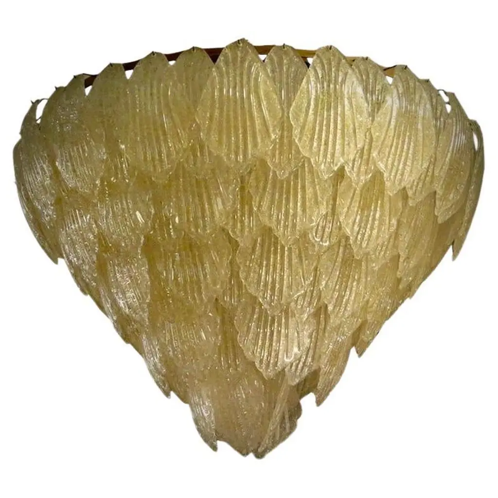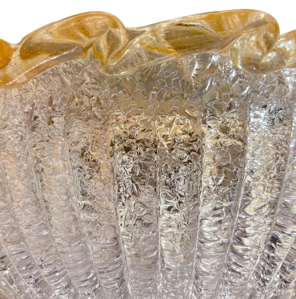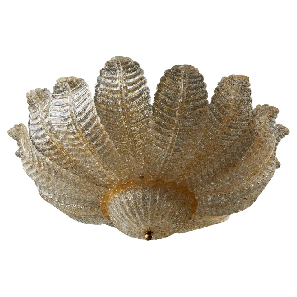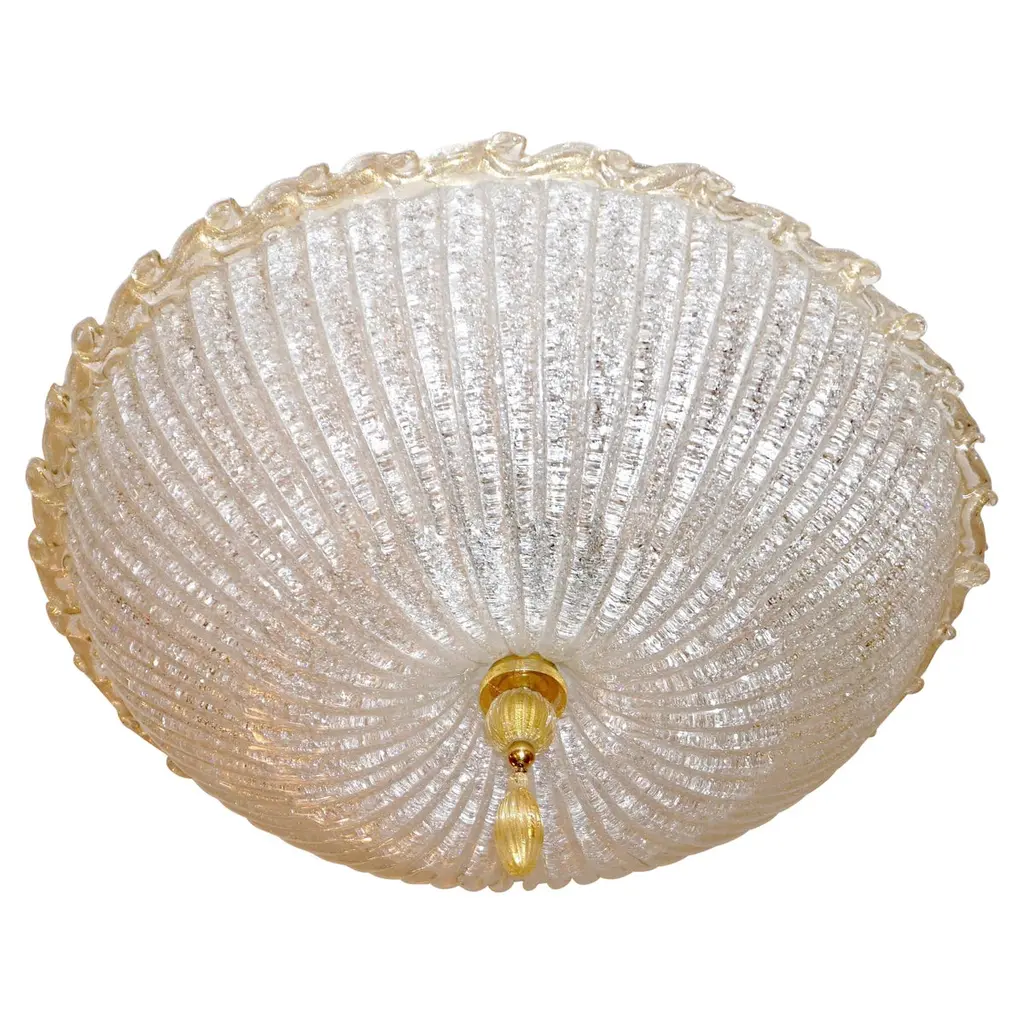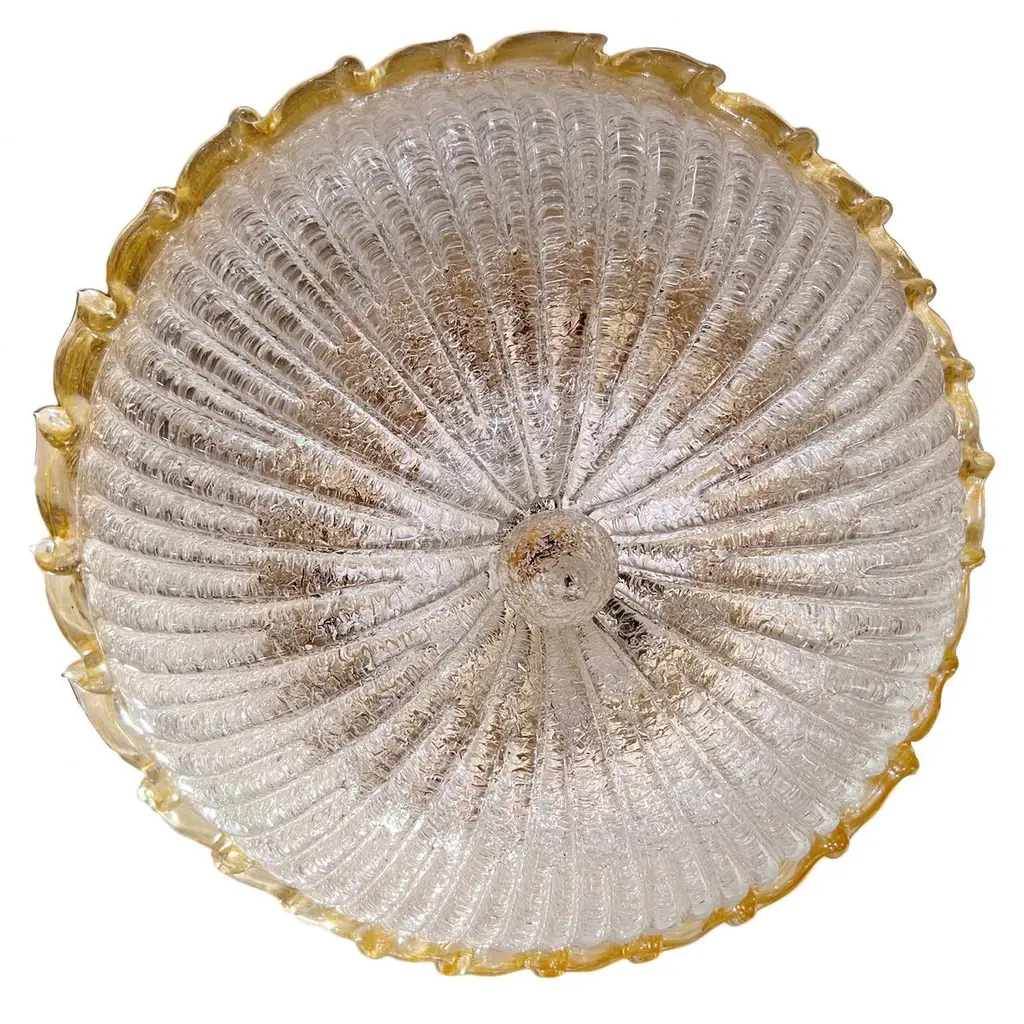Set of four circa 1940's Murano glass light fixtures, flush-mounted or semi flush. Sold individually.Measurements:Diameter: 16"Minimum drop: 5"