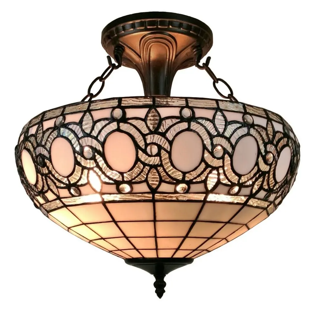 Set of eleven English circa 1930s leaded glass light fixtures. Sold Individually. Measurements:Diameter 14.5"Drop 10.5".