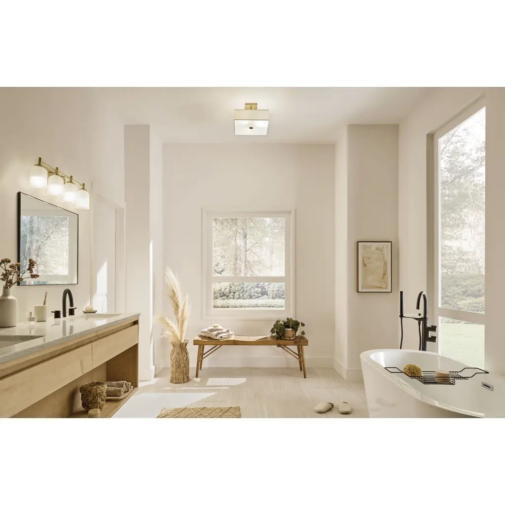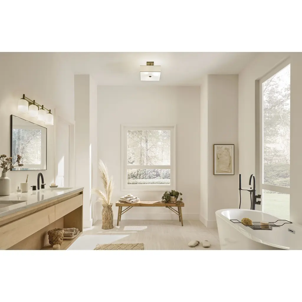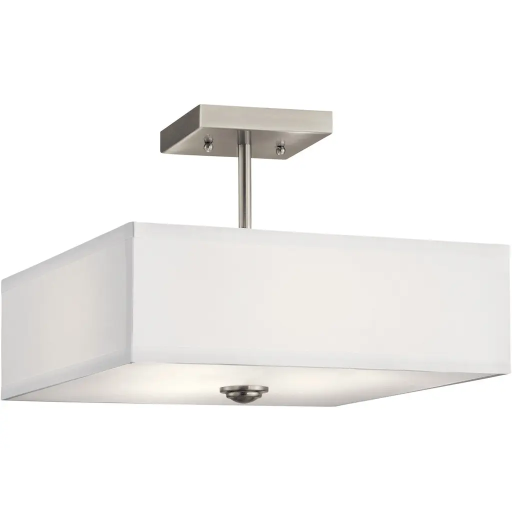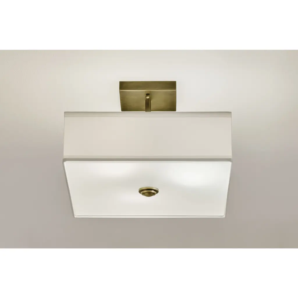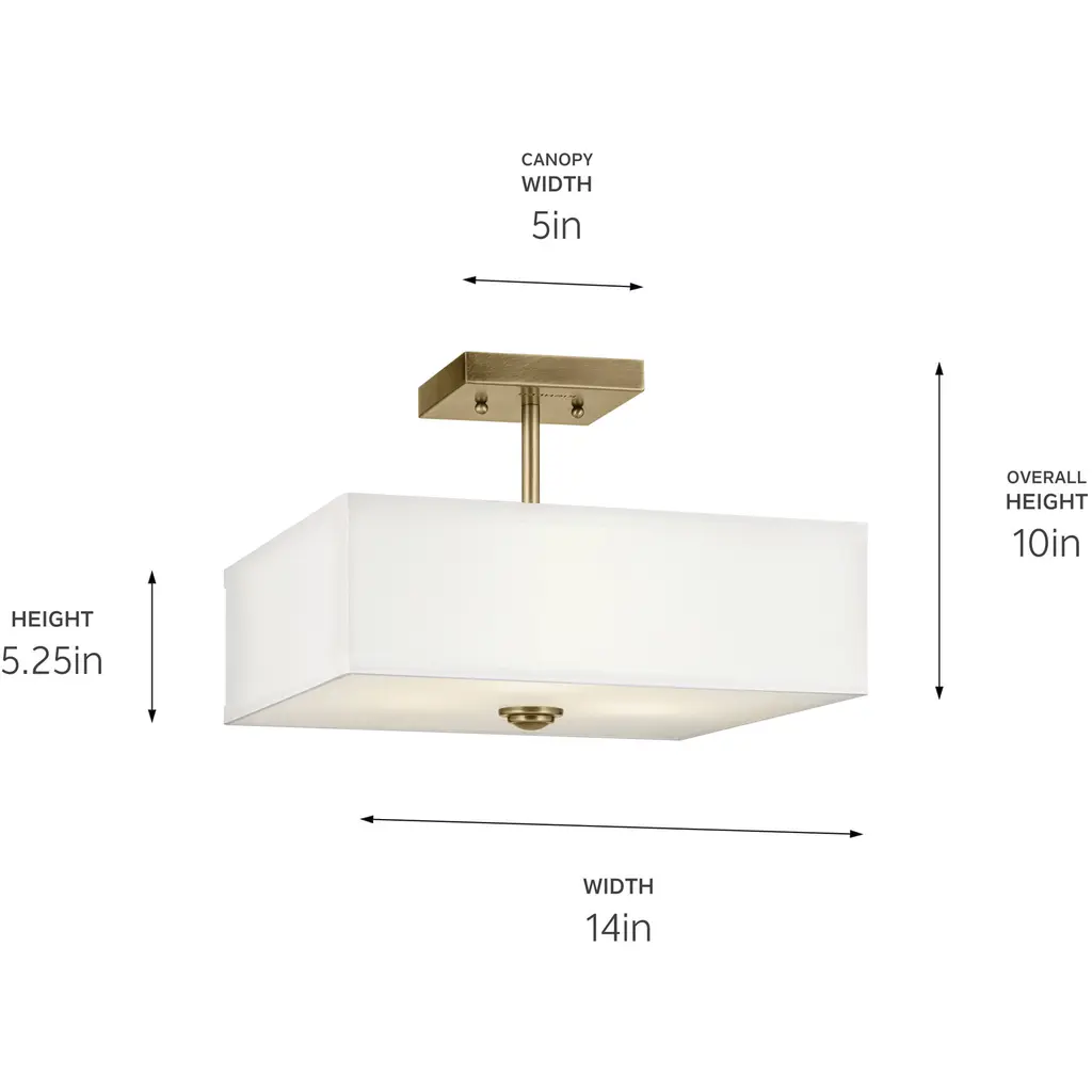 Shailene 14" 3-Light Medium Square Semi Flush with White Fabric Shade and Clear Satin Etched Diffuser in Natural Brass