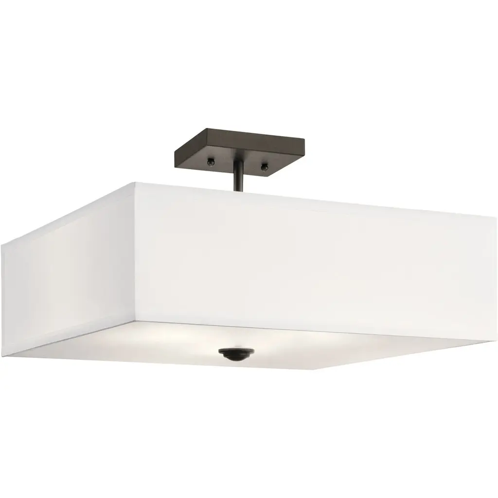 The straight lines and up-sized Satin Etched glass of this Brushed Nickel 18in. 3-light semi flush ceiling light from the Shailene(TM) collection create the perfect casual look for the updated urban lifestyle.