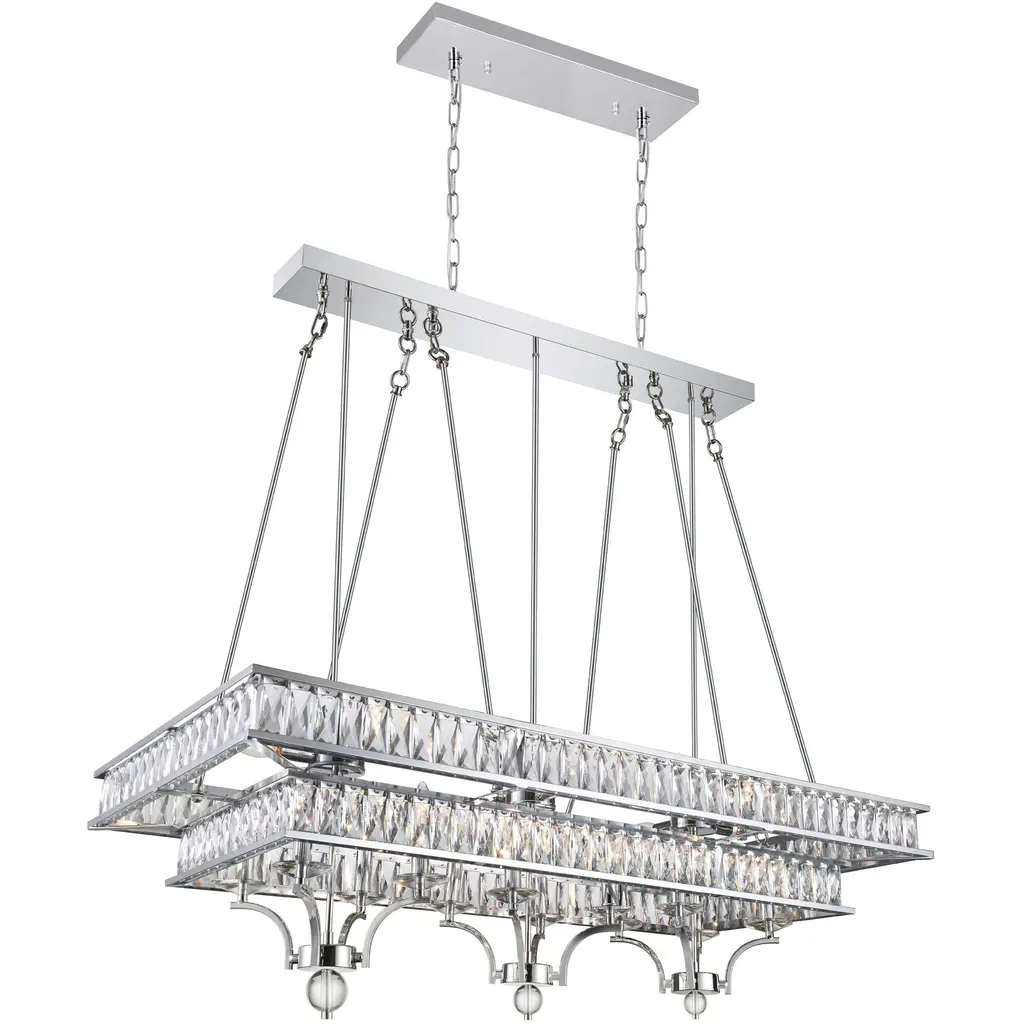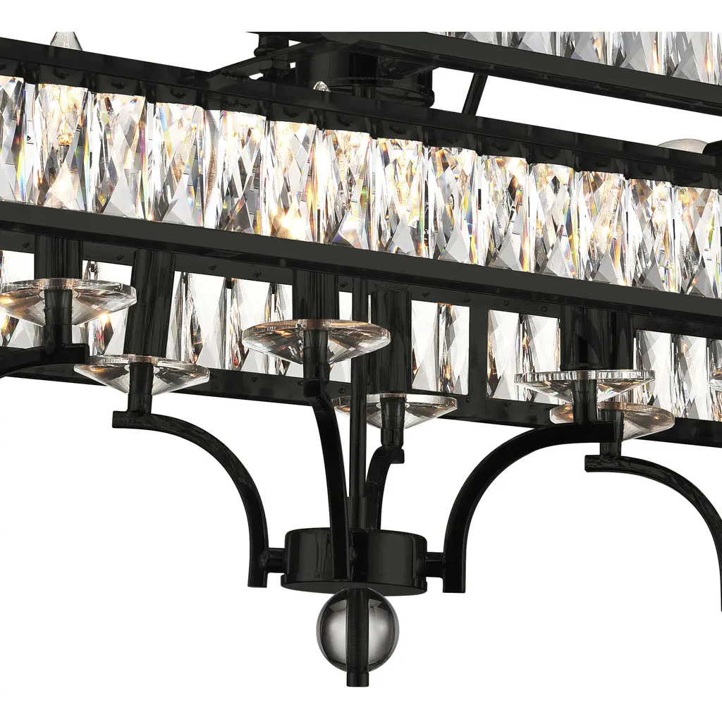 Raise the style factor of your interiors with the Shalia 20 Light Chandelier in Black. This oversized island/pool table lighting displays a traditional silhouette paired with a sleek and modern finish. Two rectangular frames dressed with faceted crystals make this light source shine brighter. Twenty candelabra bulbs that will work well with dimmer switches will take care of providing your space with ample illumination.