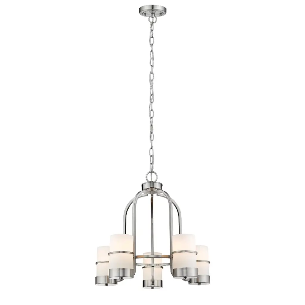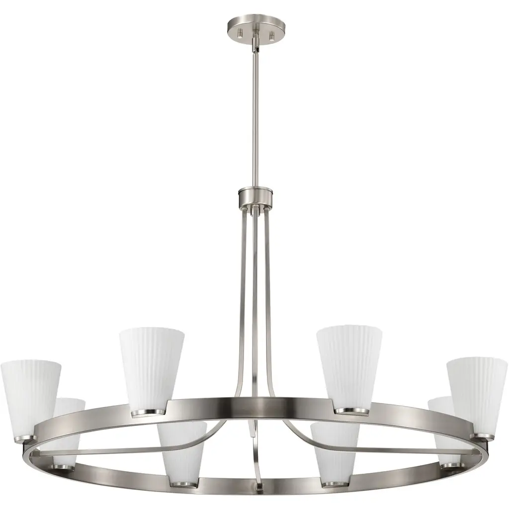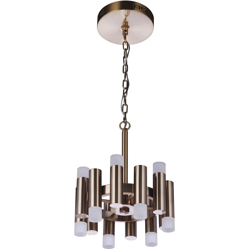 The Simple Lux Lighting Collection by Craftmade features brilliant dimmable LED light illuminating the frosted glass shades of this contemporary collection of 16", 20" and 27" diameter chandeliers and 12" diameter semi flushmount fixture. Sleek cylinders with frost LED caps alternating up and down surround the round frame suspended from a round canopy by a combination of rod and adjustable height chain. Damp Rated