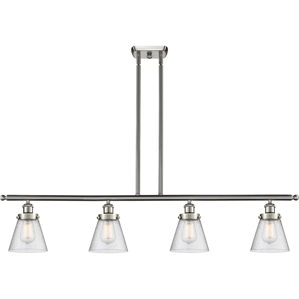 The Small Bell 4 Light Island Light is part of the Ballston Collection. Includes 10 Feet Wire. Includes 2-6 and 4-12 inch Stems With Solid Brass 90 Degree Hang Straight Swivels for Sloped Ceilings. Solid Brass 90 Degree Hang Straight Swivel for Sloped Ceilings Included