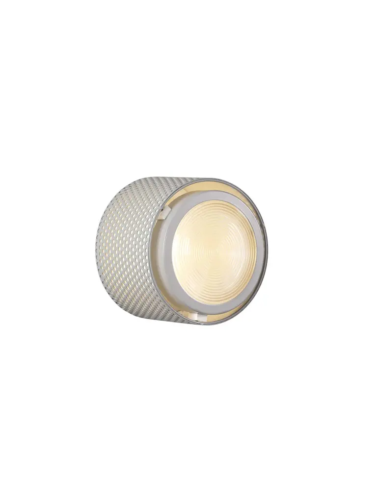 Small Pierre Guariche 'G13' wall or ceiling light for Sammode Studio in gray. Originally designed by Pierre Guariche, this iconic lamp is newly produced in an authorized re-edition by Sammode Studio in France embracing many of the same small-scale manufacturing techniques, quality materials and scrupulous attention to detail as the original. Executed in painted perforated steel and pressed fresnel glass, this light can be mounted on either the wall or the ceiling. Price is per item. Available in unlimited quantities in three sizes and in choice of black, gray, or white, please see our other listings. This listing is for the small lamp in gray.In-stock lead time 7-8 weeks. Out-of-stock lead time 9-10 weeks or more. Please note that inventory availability and lead time can change without notice. Please contact us for current lead times prior to placing time-sensitive orders.Accommodates 1x 60W equivalent candelabra base (e12) LED bulb (not included). Recommended LED bulb by Tala available separately. New in box and professionally modified for US electrical. Not UL listed. Recommended UL listing possible from an authorized 3rd party vendor for an additional cost.Made to order.All sales are final.
