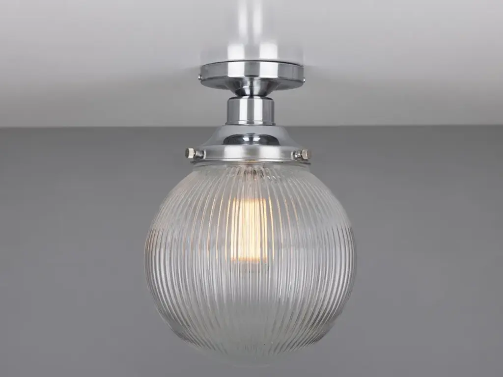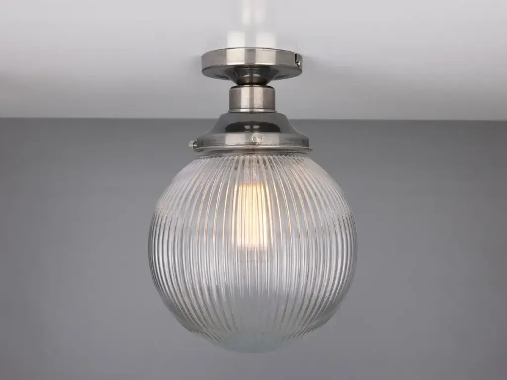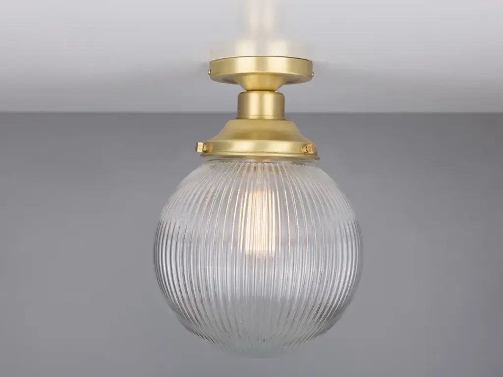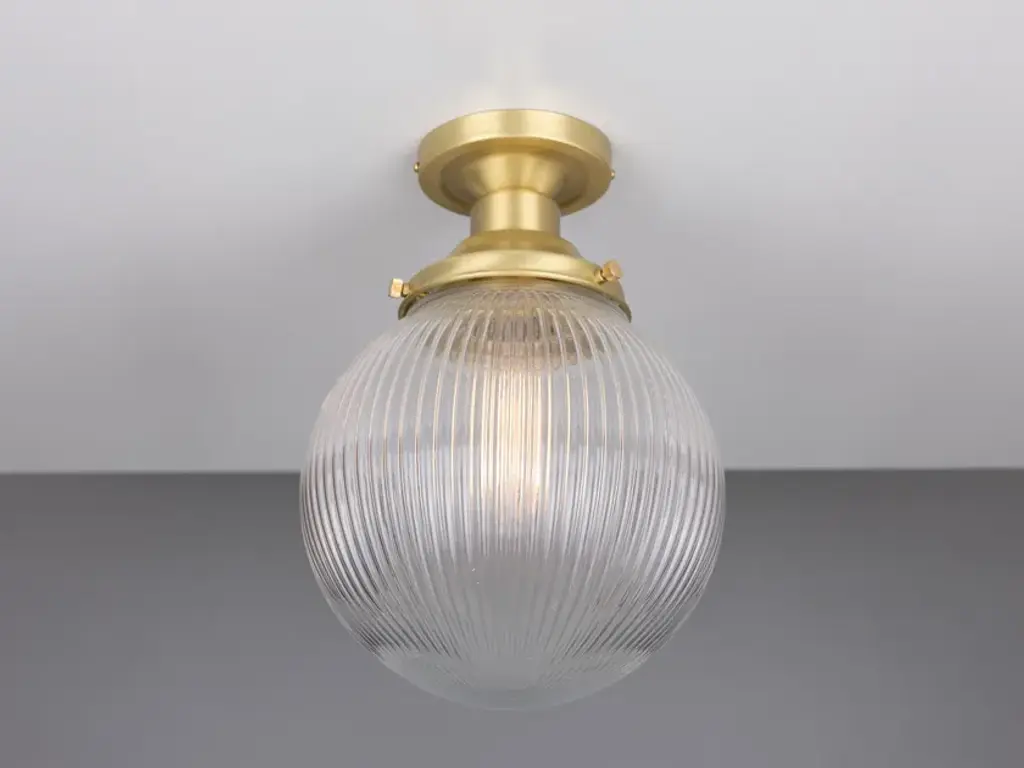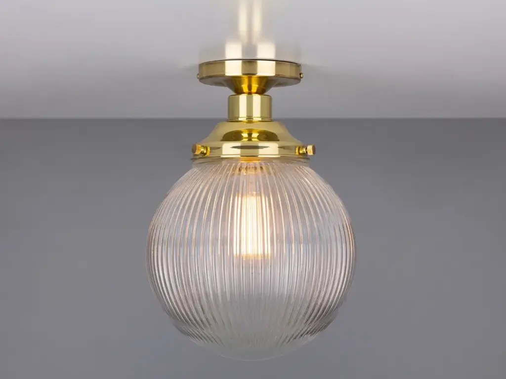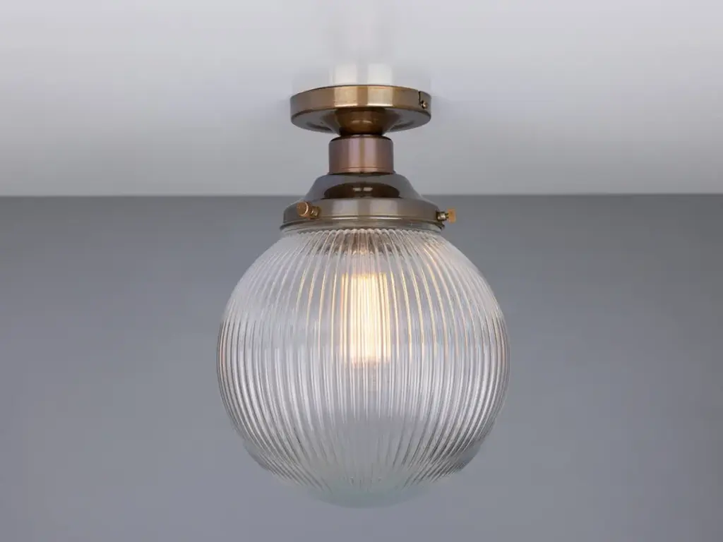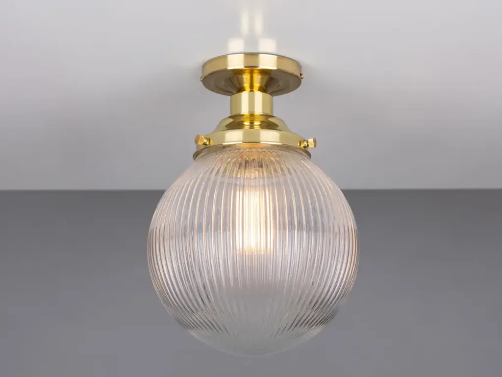 Stanley Holophane 20 cm Globe Ceiling Fitting.Material Brass | GlassMax Wattage 60wVoltage 220/240vLampholder E27 | Plastic | ES | Edison ScrewIP Rating IP20Ceiling Attachment MLROSE05Glass Code GL155