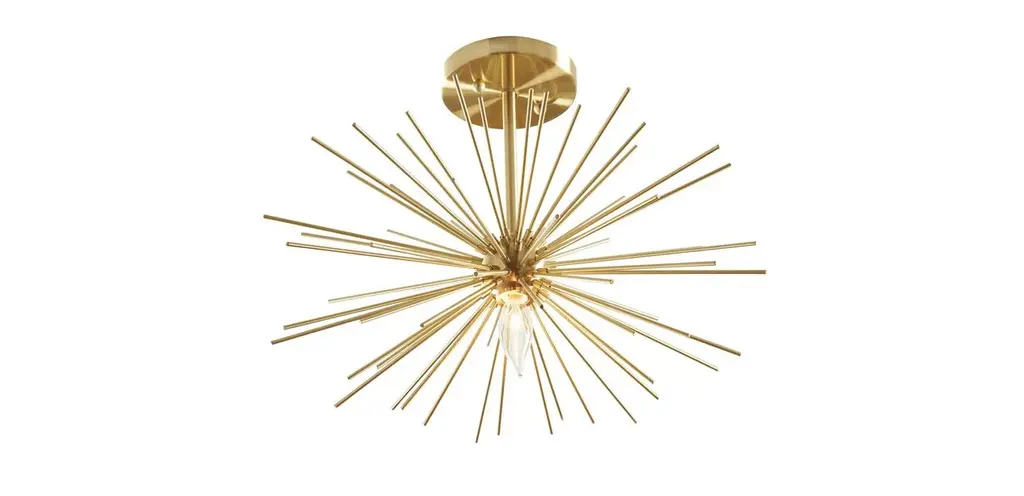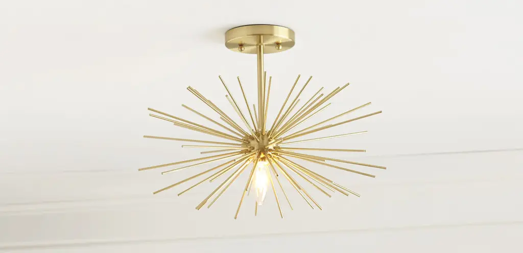Switch on our Starburst brass ceiling light, with its mini Sputnik design and semi-flush mount, and you'll bathe even the smallest spaces with dazzle and glam. Hang it solo or in groups; it's perfect for hallways, recessed nooks, and low ceilings.