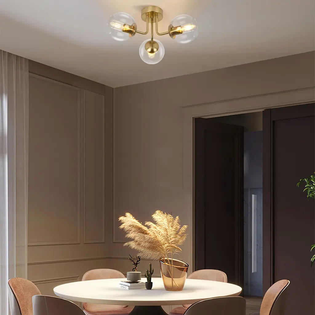Elevate your space with the contemporary charm of the Starsky Semi Flush Mount. Combining the iconic Sputnik design with the elegance of globe glass bubble shades, this fixture exudes modern sophistication. The transparent bubbles diffuse light beautifully, creating a cozy atmosphere and casting captivating patterns, making it the focal point of any room.Features:Product Details:Dimensions:Cleaning Note: