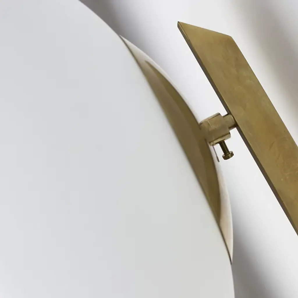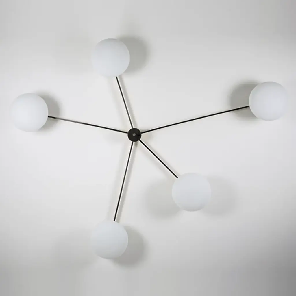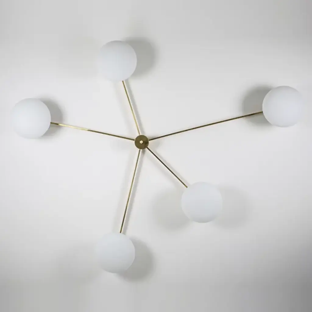 Set course for style with the enchanting angularity of the Starfish Wall / Ceiling Light from Design For Macha. An outstanding example of Italian Ultra-Modern design centered around a small circular center point, extending spindly arms of strong brass made by hand in Milan. At the end of each arm, strong lamping resides within ovoid shades of opal glass from renowned workshops, capturing glare to exchange it for the enduring glow that gleams off the rich brass surface of the fixture.