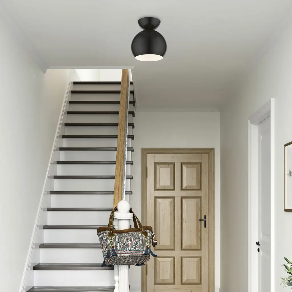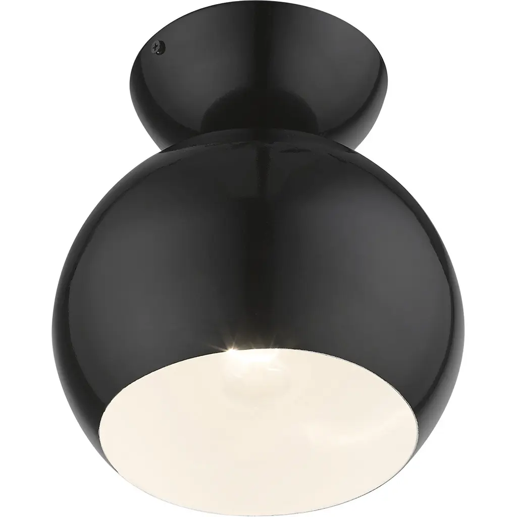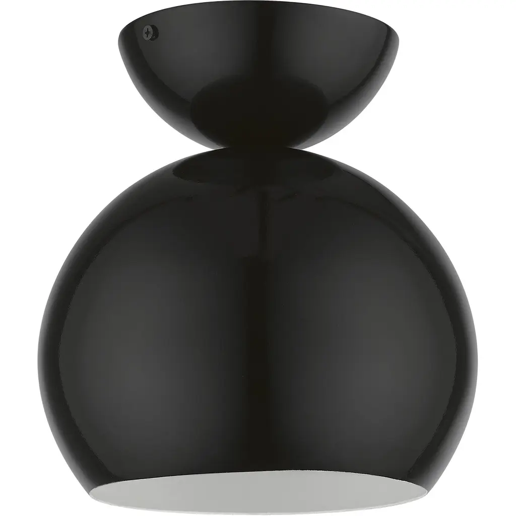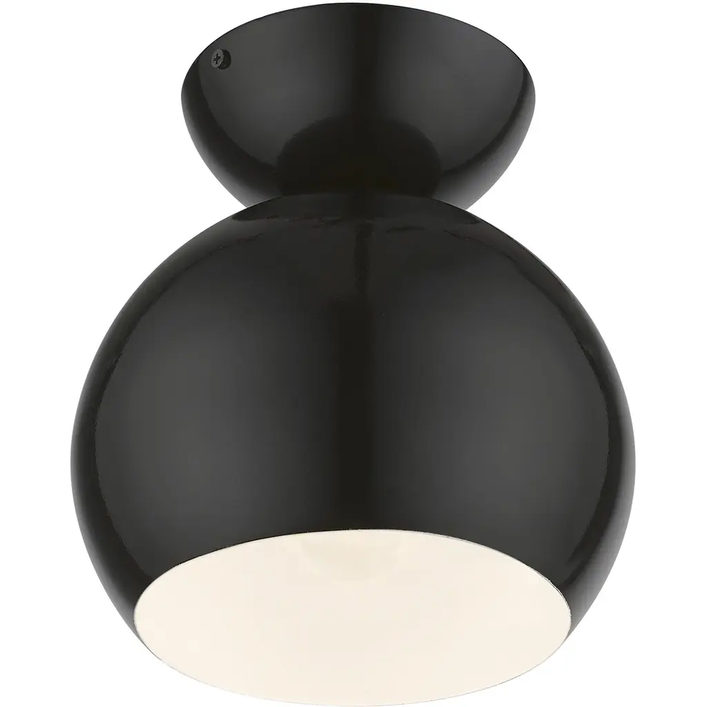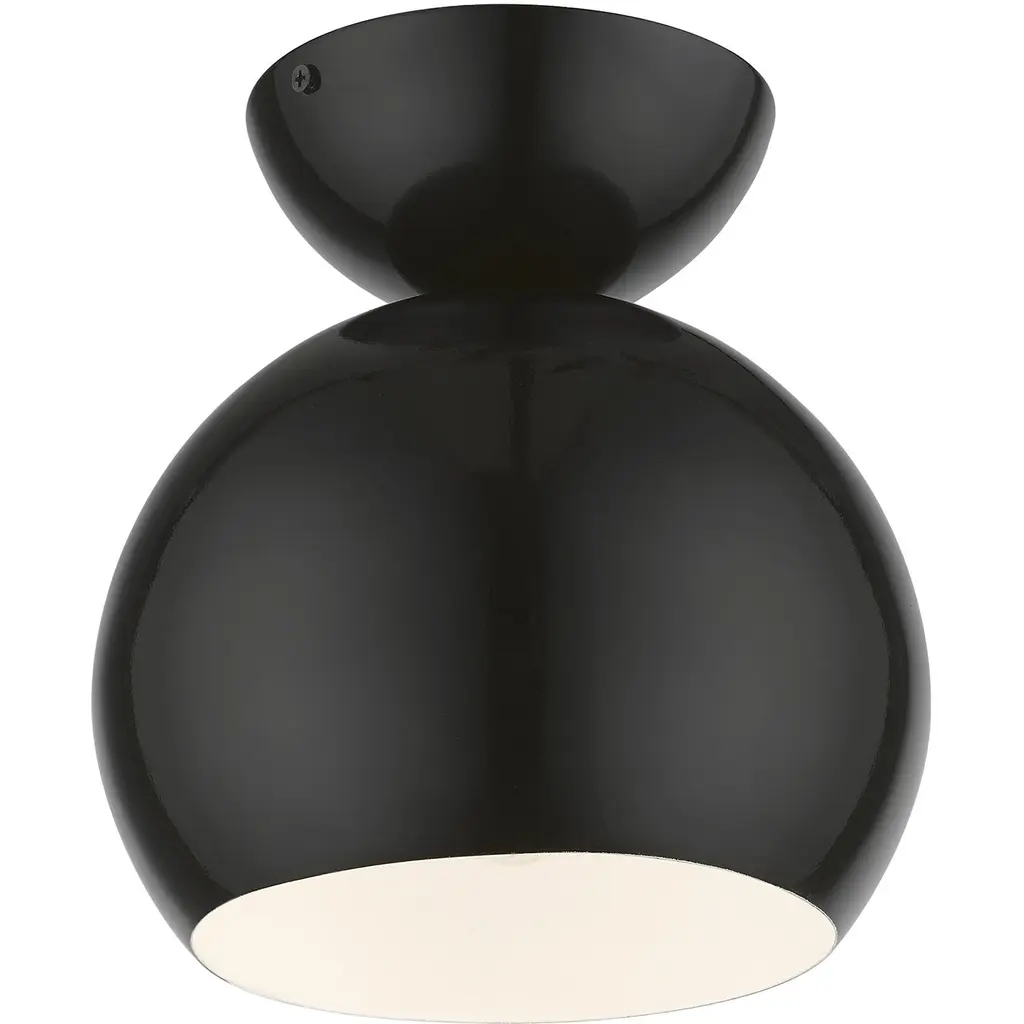 Stockton 1 Light 8 Inch Shiny Black Semi-Flush Ceiling Light, Globe