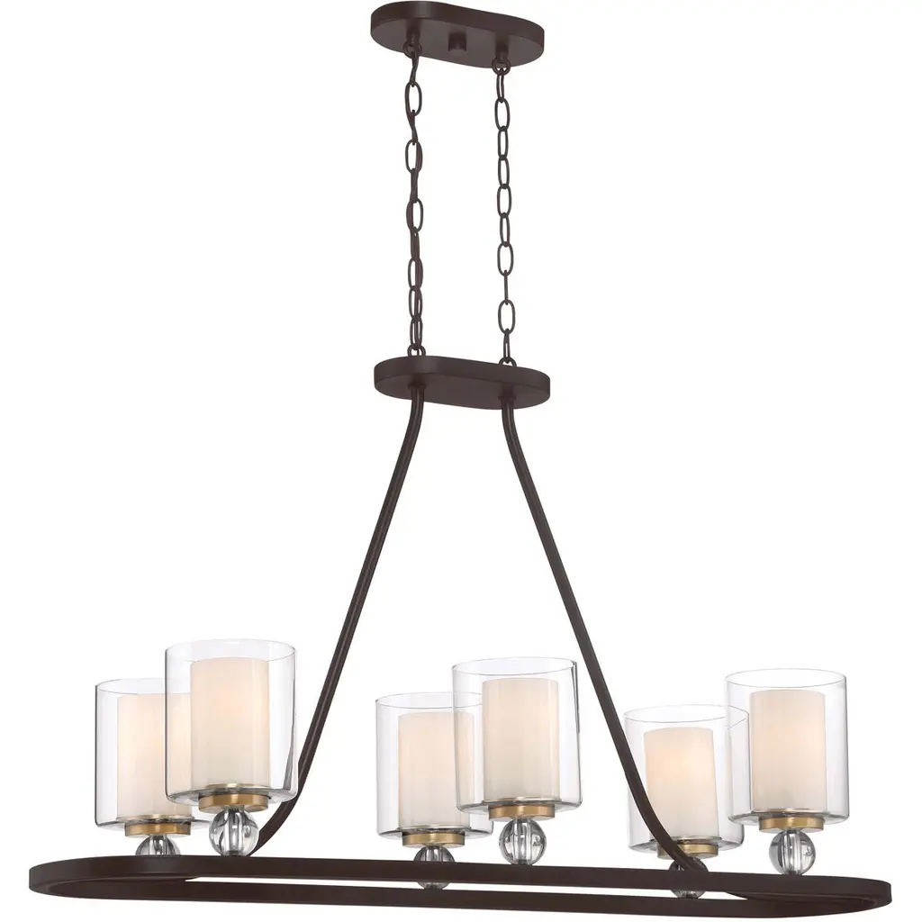 Studio 5 6 Light 38 Inch Painted Bronze/natural Brush Island Light Ceiling Light