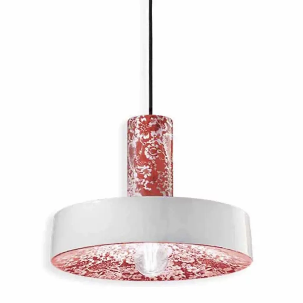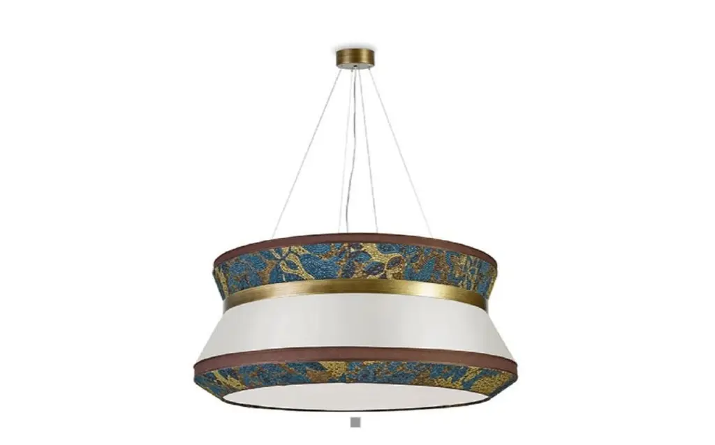Stylish Ceiling Lamp With Shade In Fabric And Metal Frame In Burnished Brass
