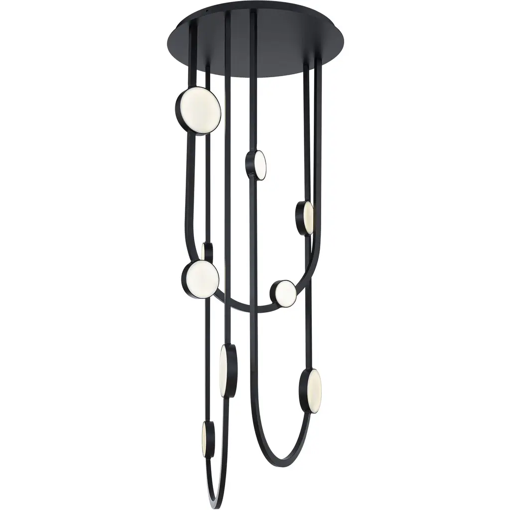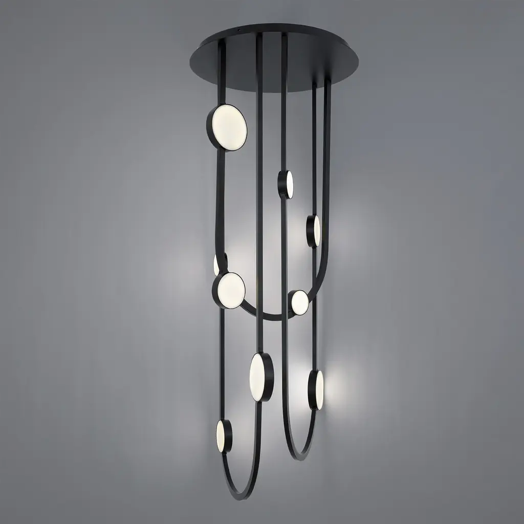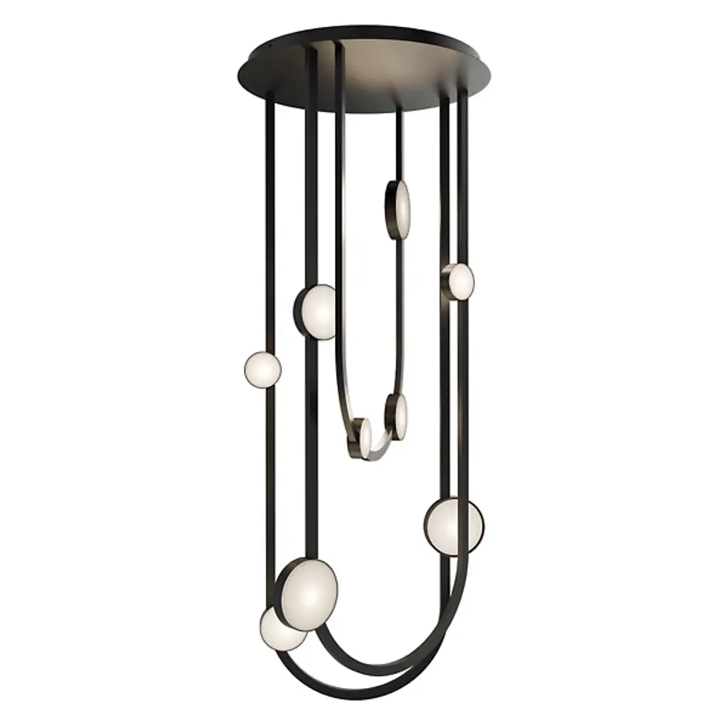 Ovals and rings descend in a striking geometric composition of clean, elegant lines, creating the Tableau flush mount light. Meticulously cut art glass shades are beautifully illuminated from the side by hidden, color temperature selectable LEDs, casting shimmering circles of light. This Deco-inspired fixture sized at an impressive 51 inches and is finished in black.
